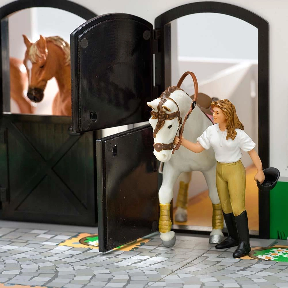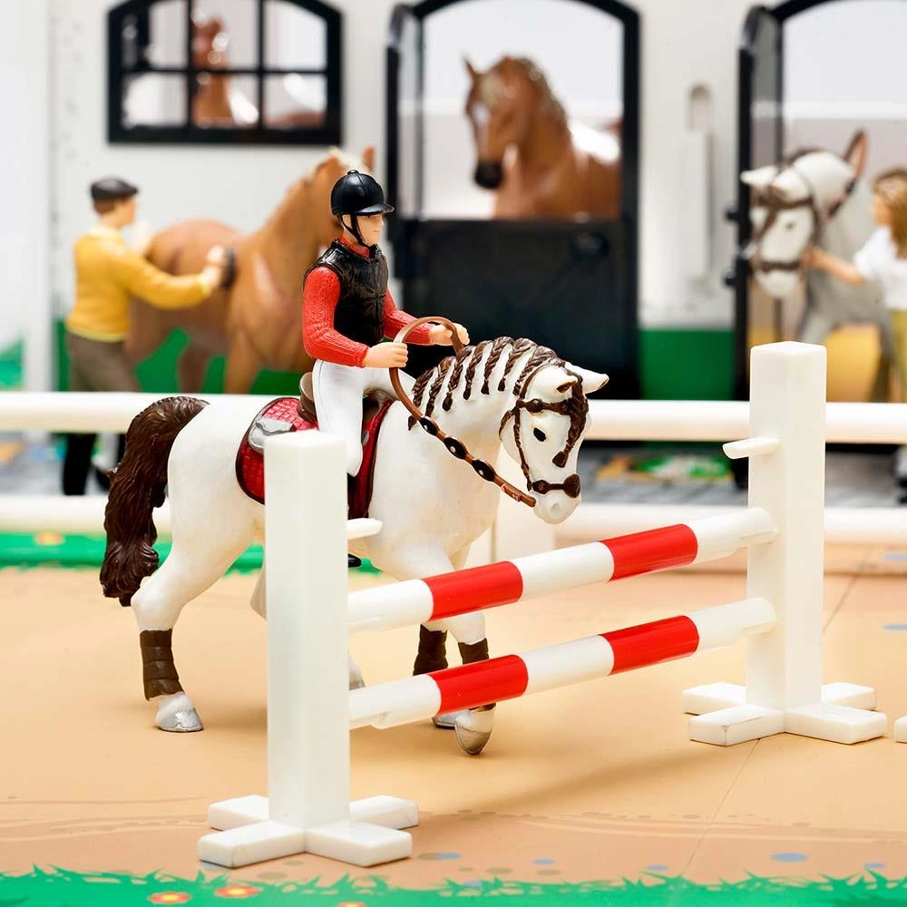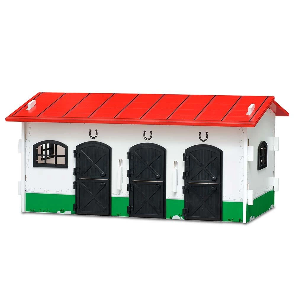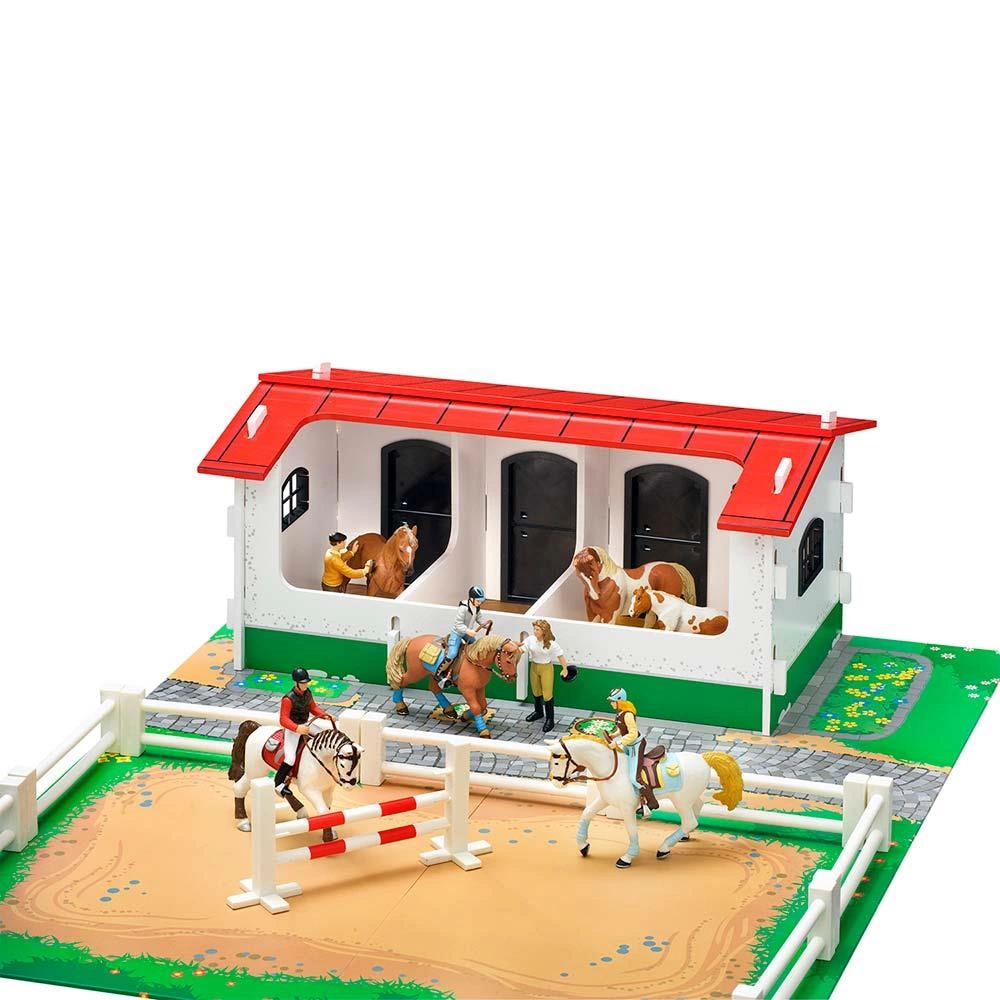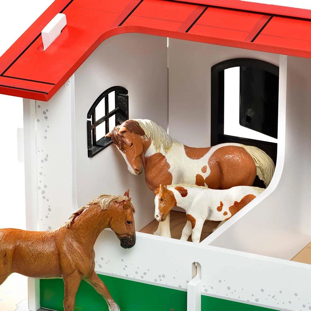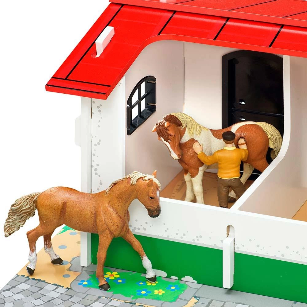 Stajnia i wybieg Micki to fantastyczna zabawka dla wszystkich małych chłopców i dziewcząt, którzy kochają konie! Wyszczotkuj i dbaj o swoje konie w pięknej stajni, zanim będziesz ćwiczyć skoki przez przeszkody na wybiegu. A potem przyjdzie pora na przejażdżkę! Stajnia jest wykonana z drewna i jest wyposażona w praktyczną matę do zabawy z kartonu (75x59 cm). Stajnia jest łatwa do samodzielnego złożenia, a potem twoje konie mogą się wprowadzić.