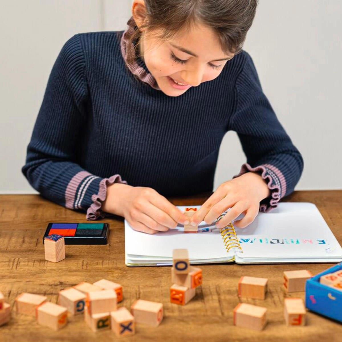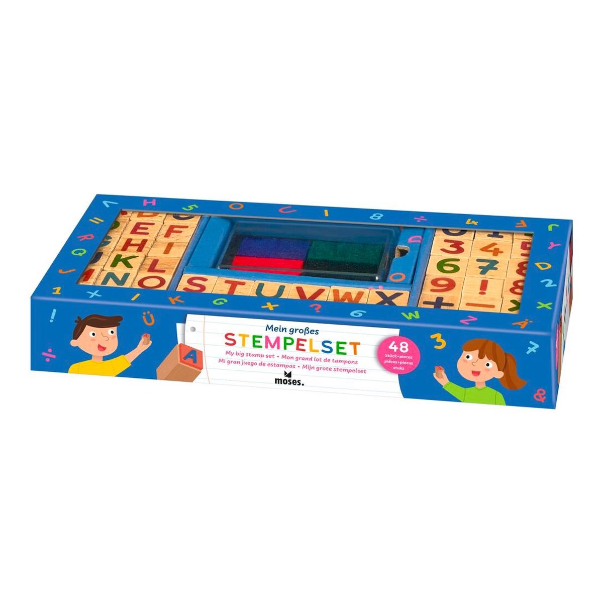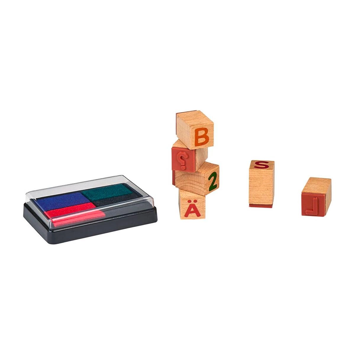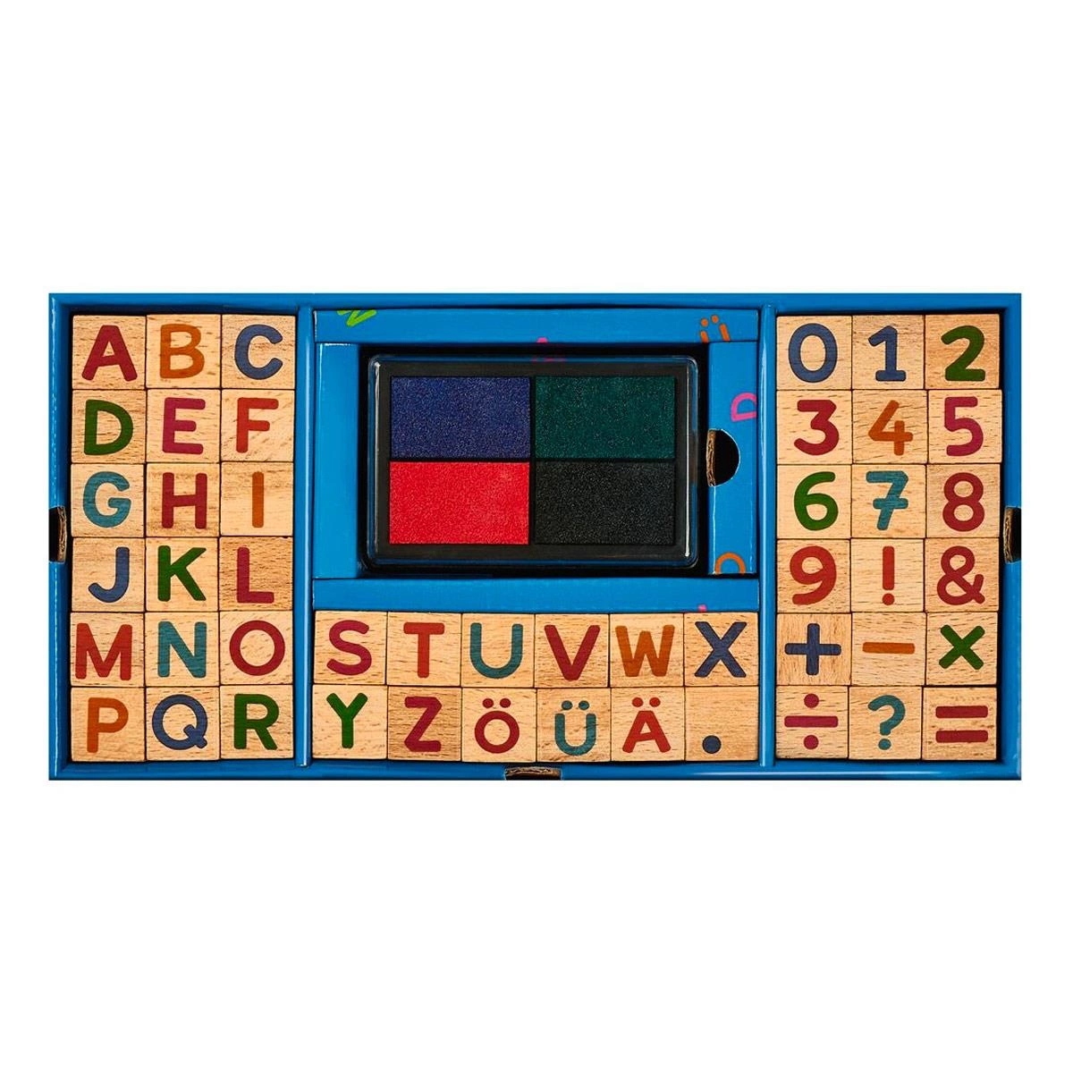 Zestaw zawiera 48 różnych stempli, w tym dla wszystkich liter alfabetu, cyferek oraz znaków zapytania i wykrzykników. Dzieci mogą uwolnić swoją kreatywność i tworzyć i projektować pojedyncze słowa, zdania lub całe teksty. W zestawie znajdują się również stemple w postaci cyfr oraz symboli arytmetycznych czterech podstawowych operacji arytmetycznych. To sprawia, że zestaw idealnie nadaje się nie tylko do kreatywnych prac plastycznych, ale również do drobnych ćwiczeń arytmetycznych.