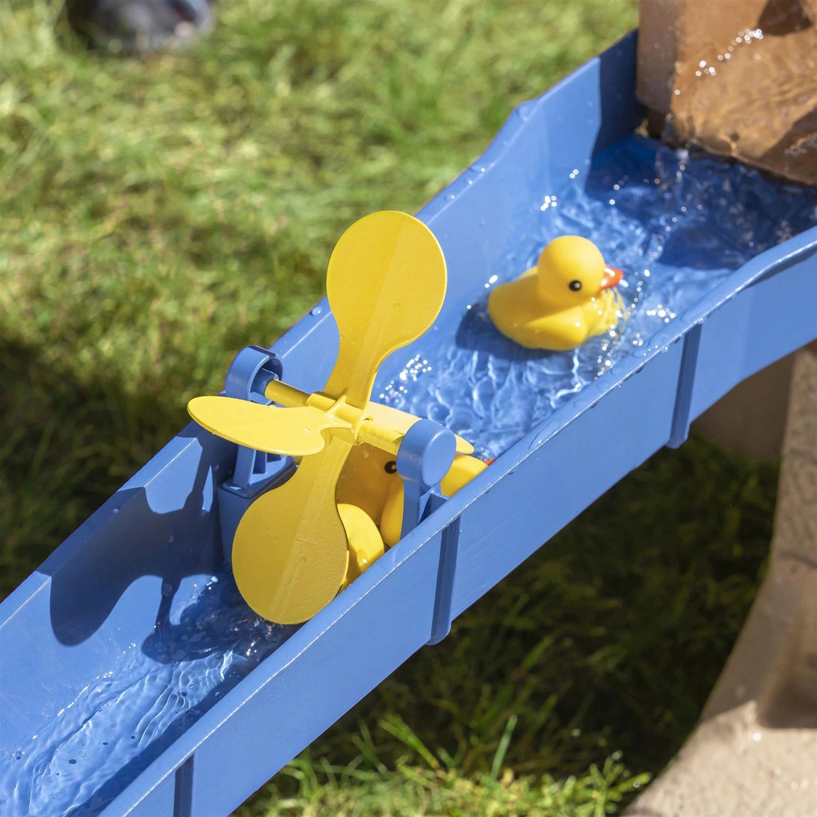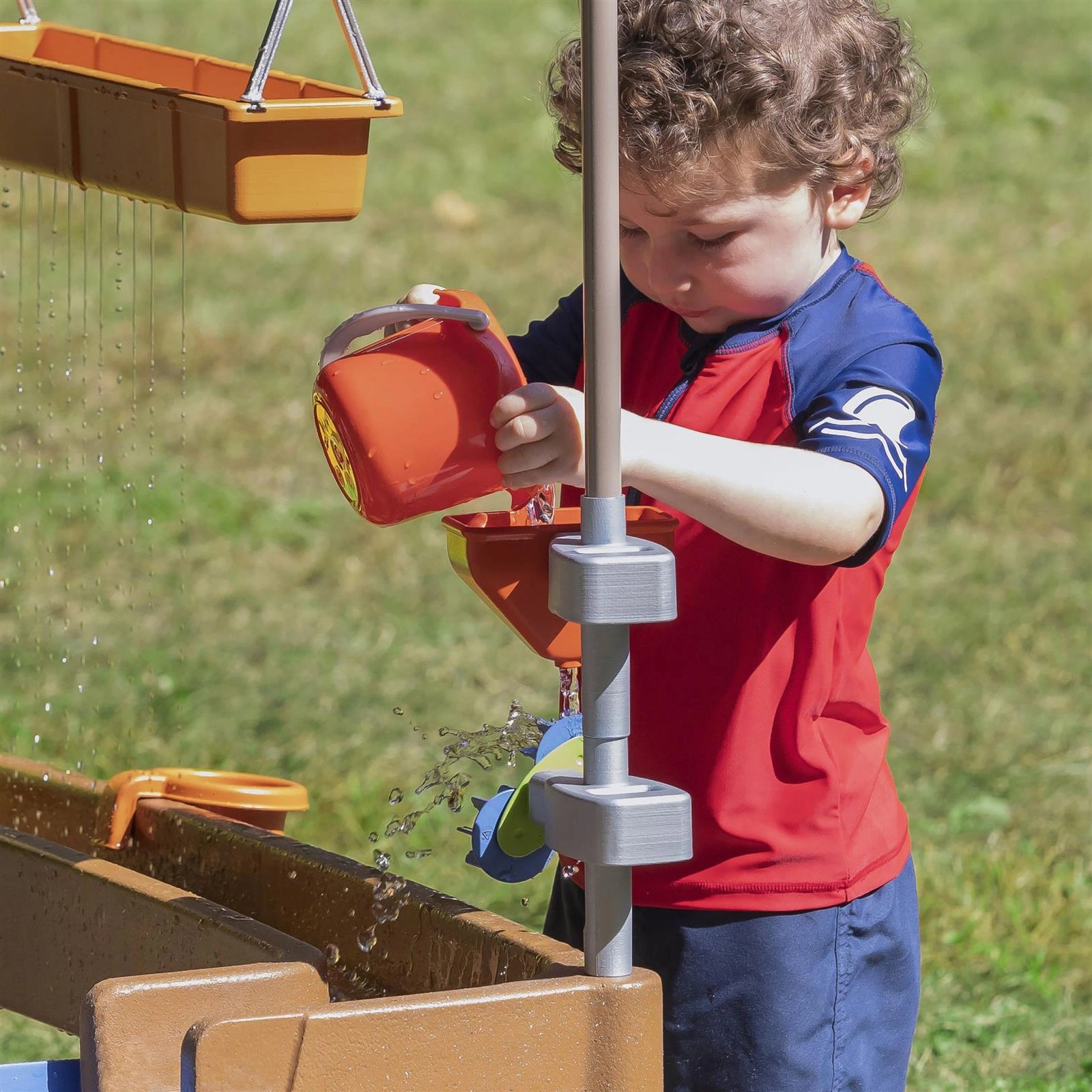 Ruchome elementy: wodne lejery, spinnery, zdejmowana zapora i efektowna taca deszczowa dla jeszcze więcej zabawy.