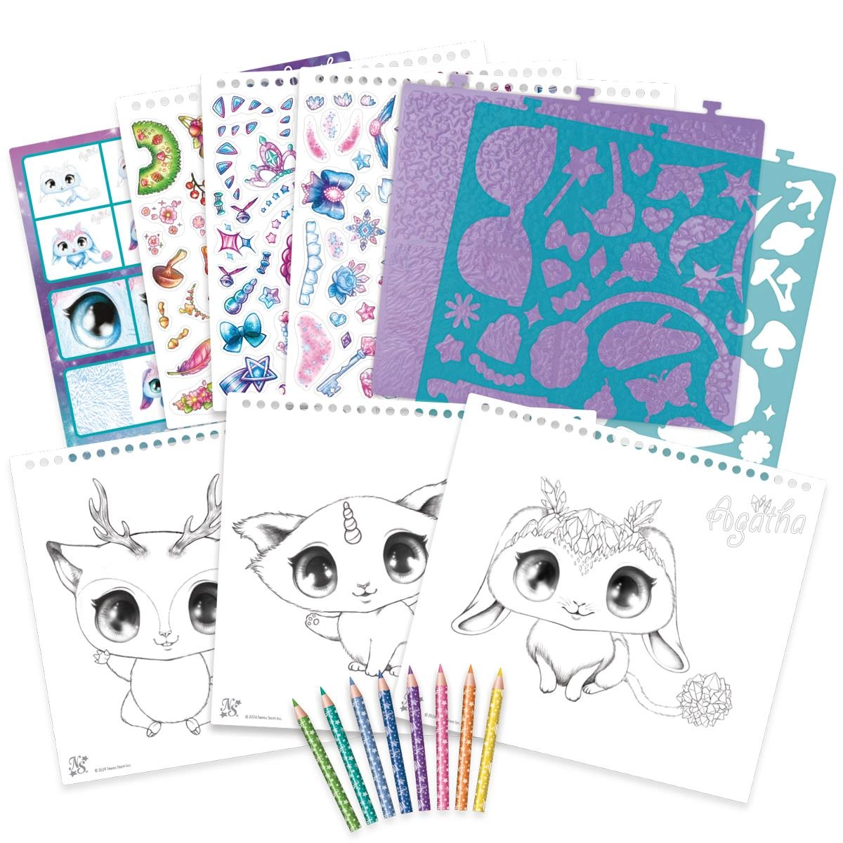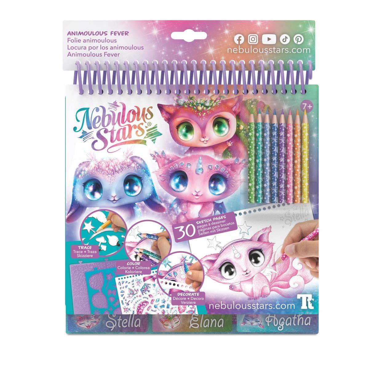 - Magiczna historia zwierzątek i bohaterek Nebulous Stars – Szkicownik zawiera opowieść o Stellii, Elanie i Agathcie – przyjaciółkach z magicznego świata. Bajkowa narracja wprowadza klimat fantazji i zachęca do kreatywnego myślenia.