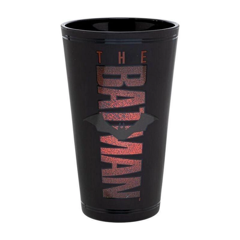 Eleganckie i stylowe, matowe czarne szkło o pojemności 400 ml ma logo z filmu 2022 „Batman” w głębokim czerwonym połysku.