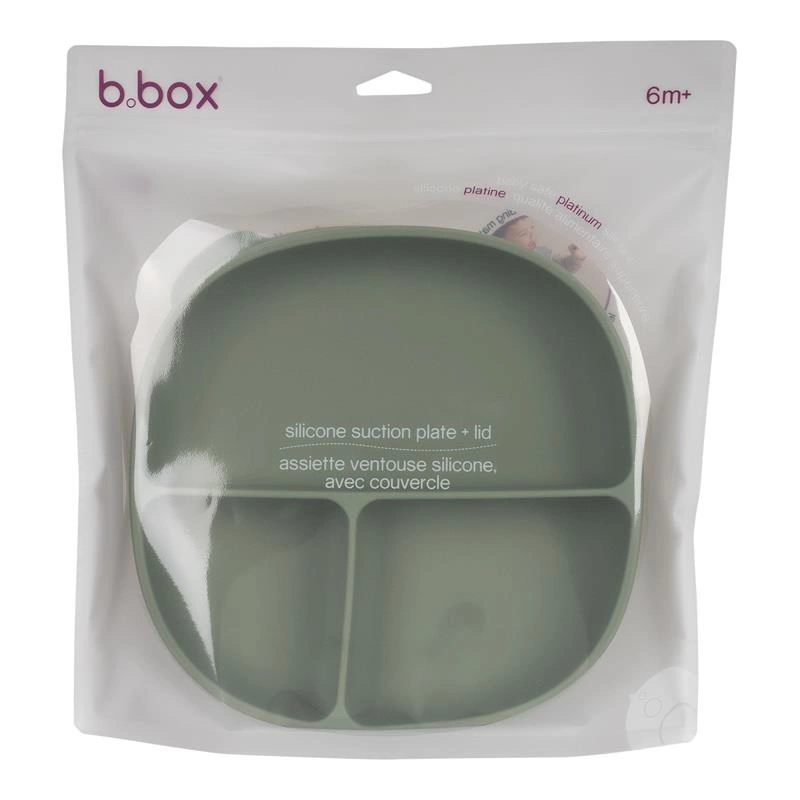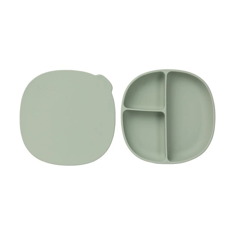 Szałwiowy talerz silikonowy dla dzieci z przyssawką i pokrywką od b.box!