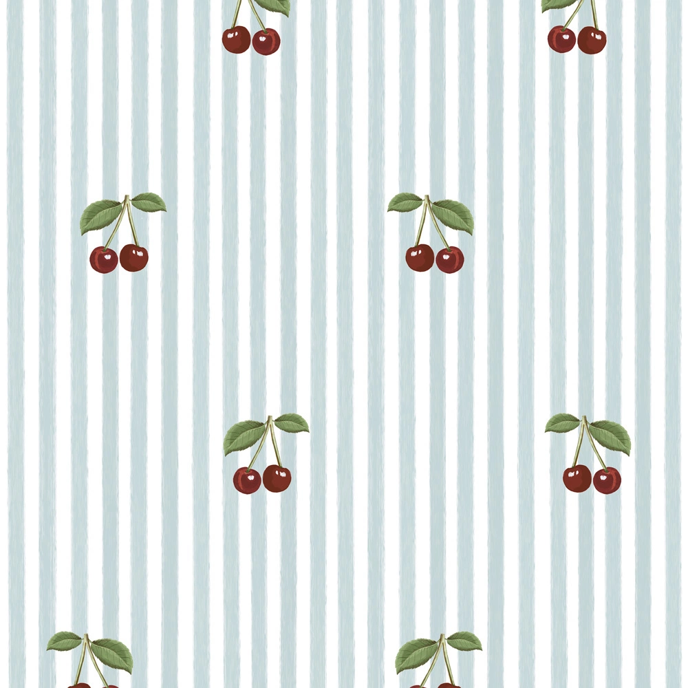 Tapeta Little Cherries on Blue Stripes