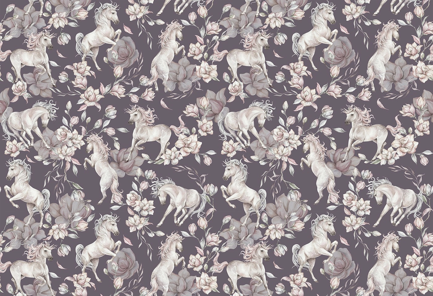 Tapeta W Jednorożce- UNICORNS Kolor 'Purple Gray' Malumi