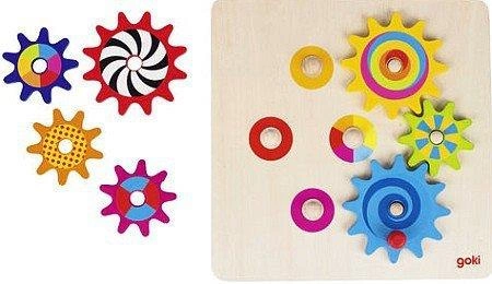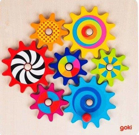 Tęczowe koła zębate - zabawka motoryczna, układanka, 58530-Goki, zabawki drewniane