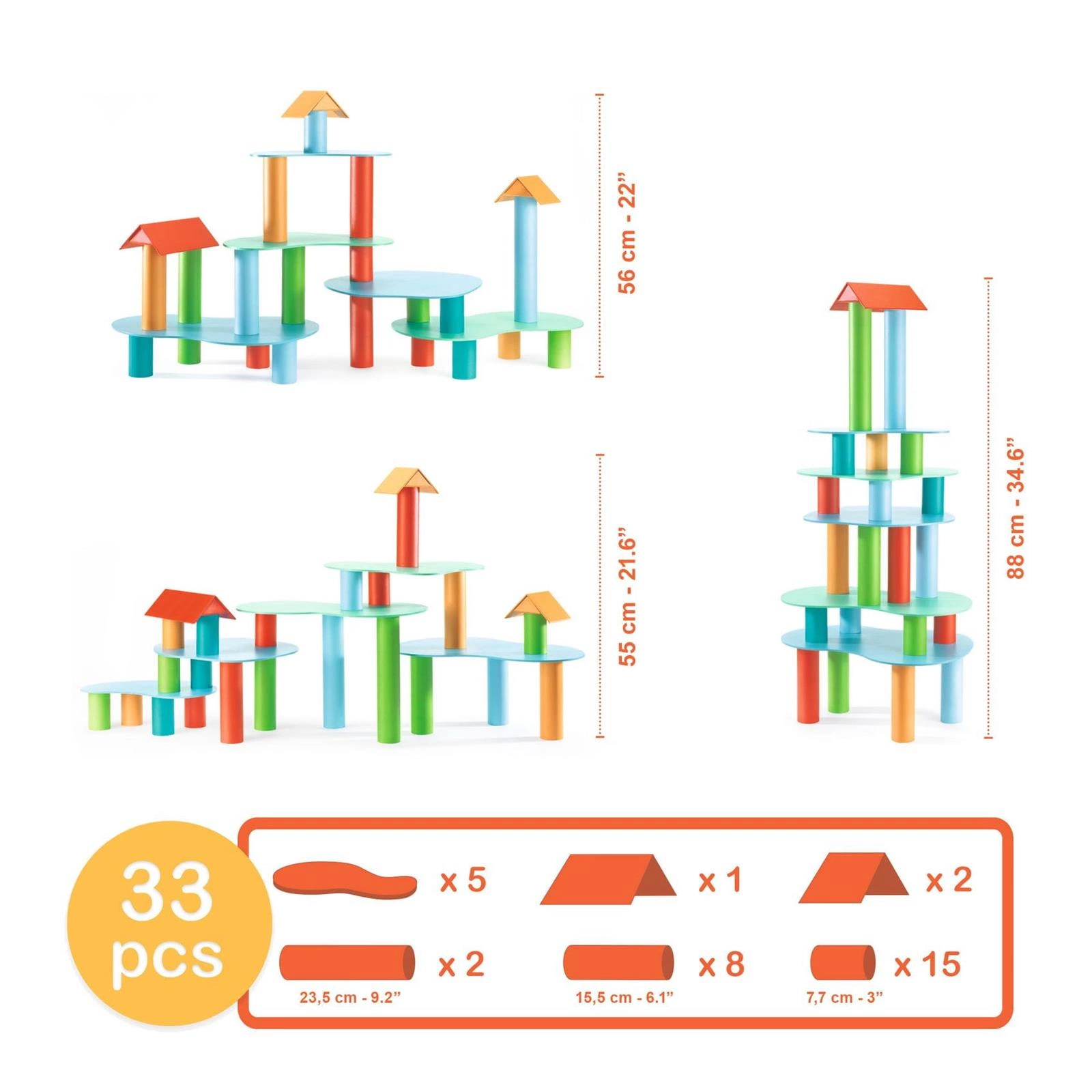 Powstałe budowle mogą stanowić pole do zabawy własnymi zabawkami np. figurkami Tinyly lub Arty Toys. Elementy zestawu są wykonane z papieru i kartonu posiadającego certyfikat FSC®.