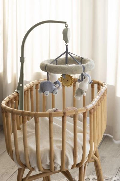 Miffy Karuzela do łóżeczka Fluffy Blue od Tiamo. Karuzela posiada 5 pięknych i kolorowych zawieszek, które z pewnością spodobają się każdemu maluszkowi. Niemowlęta uwielbiają obserwować poruszające się postacie. Karuzela z pozytywką pozwala maluchowi na rozwój sensoryczny oraz poznawczy. Po nakręceniu gra delikatną, spokojną kołysankę "Miffy, Sweet little bunny, Miffy". Stanowi świetne uzupełnienie dla pozostałych zabawek dla niemowląt Tiamo z kolekcji Fluffy.