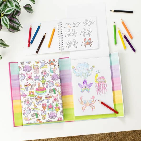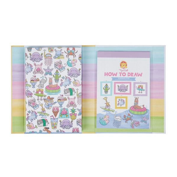 Jak Rysować - Letnia Zabawa od Tiger Tribe to zestaw który ma wszystko, czego potrzebujesz, aby rysowanie stało się łatwe! Postępuj zgodnie z prostymi instrukcjami krok po kroku, a w mgnieniu oka stworzysz wspaniałe dzieło sztuki. Opakowanie tego zestawu do kreatywnej aktywności zostało specjalnie zaprojektowane z przegródkami do przechowywania, aby zachować bezpieczeństwo kredek i stworzonych własnoręcznie dzieł sztuki, dzięki czemu idealnie nadaje się do przenośnej i bezproblemowej zabawy.