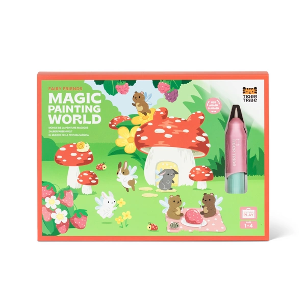 Kolorowanka Wodna - Kraina Wróżek od Tiger Tribe. Maluchy mogą odkrywać malowanie bez bałaganu dzięki temu przenośnemu zestawowi. Kolorowanka wodna to idealne wprowadzenie do malowania dla maluchów. Ukryte obrazki można odkryć przy użyciu samej wody za pomocą grubego pędzla wodnego o idealnym rozmiarze dla małych rączek. Po wyschnięciu sceny znikają, dzięki czemu dzieci mogą bawić się w kółko! Do odkrycia są 4 obrazki z motywami leśnych wróżek. Z tyłu każdego obrazka są zadania - na każdej planszy z ilustracjami należy odszukać i policzyć podczas malowania określone elementy. Gwarantuje to wiele godzin zabawy!