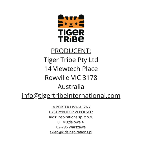 Tiger Tribe to pochodząca z Australii, rodzinna marka, której misją jest projektowanie zabawek, które pobudzają wyobraźnię dzieci i promują ciekawą zabawę z dala od ekranów. Produkty marki są projektowane tak, aby zapewniać dzieciom swobodę twórczą w zakresie samodzielnego odkrywania świata. Tiger Tribe jako marka dziecięca, poczuwa się do odpowiedzialności za dbałość o środowisko i pomoc w zapewnieniu zrównoważonej przyszłości dzieciom. Marka stale poszerza ofertę ECO tj. produktów stworzonych przy użyciu głównie bioplastiku i wykonanych z opakowań z papieru pochodzącego w 100% z recyklingu. Ponadto Tiger Tribe od lat dumnie wspiera organizacje ekologiczne.