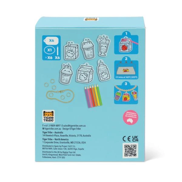 Zawieszki do Wypiekania - Słodycze od Tiger Tribe to wspaniały zestaw kreatywny zawierający wszystko, czego potrzebujesz, aby stworzyć własną, wspaniałą biżuterię z termokurczliwych elementów. Po prostu pokoloruj ilustrowane, wstępnie wycięte wzory, włóż je do piekarnika i obserwuj, jak magicznie kurczą się do 40% swojego pierwotnego rozmiaru, na twoich oczach! W miarę jak twoje figurki się kurczą, kolory stają się bardziej intensywne. Czysta magia! Kreatywne zestawy Tiger Tribe stanowią świetną alternatywę dla czasu spędzonego przed ekranem, promując uważność, relaks i odprężające zajęcie.