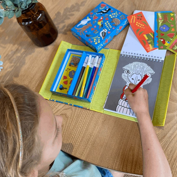 Zestaw Błyszczących Kolorowanek – Australijskie Zwierzęta od Tiger Tribe to kreatywny zestaw do kolorowania. Wybierz się w podróż po świecie fascynujących autralijskich zwierzątek dzięki zestawowi do kolorowania, który zawiera pięknie ilustrowane strony z koalami, wombatami, strusiami i innymi. Zestaw zaprojektowany tak, aby Tygryski były zajęte w podróży - w jednym pudełku z magnetyczną klapką, aby bezpiecznie przechowywać zawartość. Zaprojektowane z myślą o przenośnej zabawie zestawy do kolorowania Tiger Tribe stanowią świetną alternatywę dla czasu spędzonego przed ekranem, promując uważność, relaks i odprężające zajęcie.