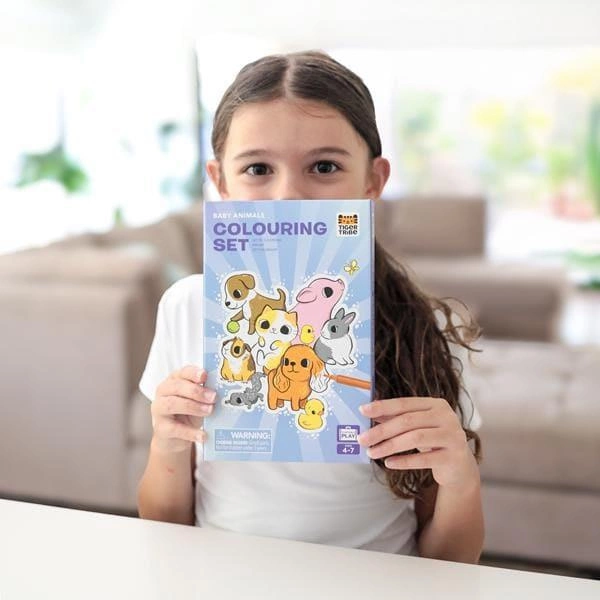 Zestaw Błyszczących Kolorowanek - Małe Zwierzątka od Tiger Tribe to kreatywny zestaw do kolorowania. Wybierz się w podróż po świecie uroczych małych zwierzaczków dzięki zestawowi do kolorowania, który zawiera pięknie ilustrowane strony ze słodkimi kociętami, zabawnymi szczeniaczkami i przytulnymi koalami. Zestaw zaprojektowany tak, aby Tygryski były zajęte w podróży - w jednym pudełku z magnetyczną klapką, aby bezpiecznie przechowywać zawartość. Zaprojektowane z myślą o przenośnej zabawie zestawy do kolorowania Tiger Tribe stanowią świetną alternatywę dla czasu spędzonego przed ekranem, promując uważność, relaks i odprężające zajęcie.