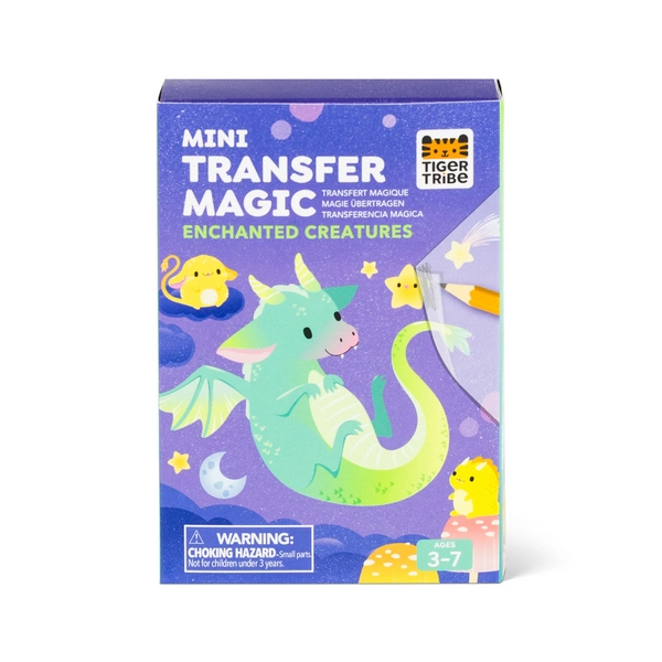 Tiger Tribe Zestaw z Folią Transferową - Zaczarowane Stworzenia od Tiger Tribe to uroczy zestaw do zabawy w nowym, super kompaktowym formacie, w którym dzieci wykorzystują swoją wyobraźnię, aby tworzyć własne kreatywne kombinacje. Wystarczy wybrać arkusz kalkomanii, usunąć papier podkładowy, umieścić wybrany element kalkomanii na szablonie stworka i pocierać ją dołączonym ołówkiem. Zaprojektowane do bezproblemowej, przenośnej zabawy, wszystko jest starannie zapakowane w poręczne pudełko.