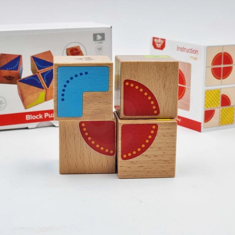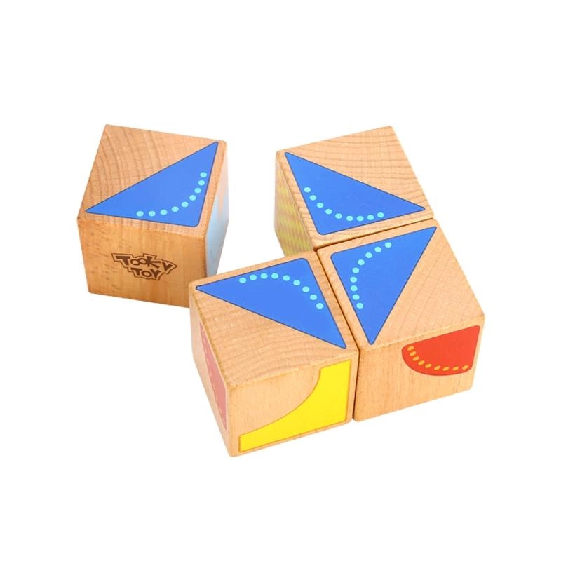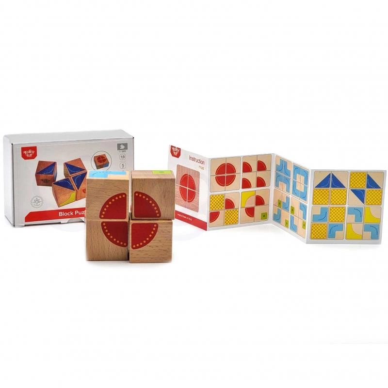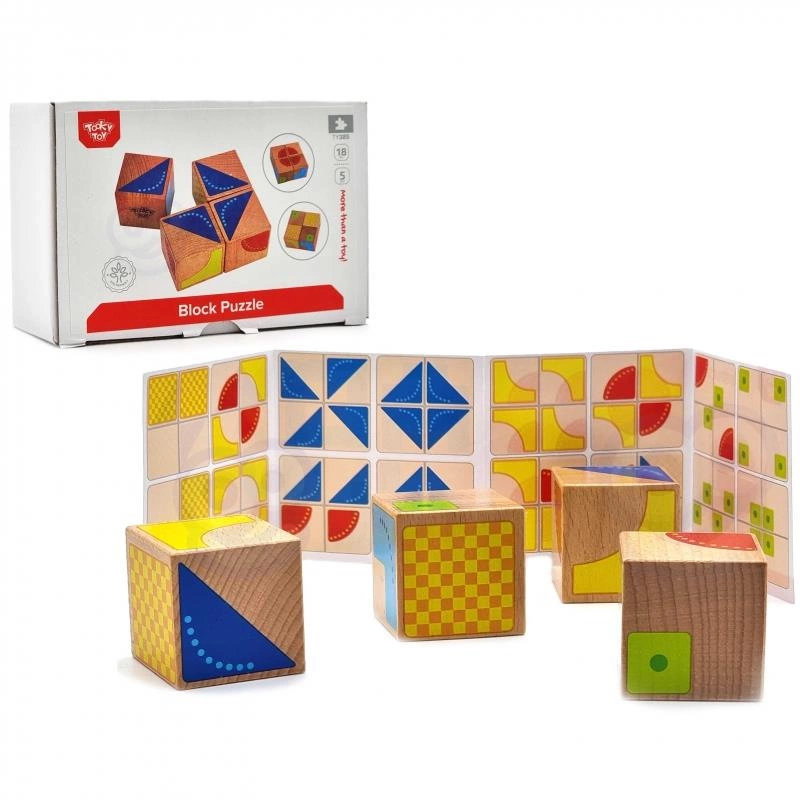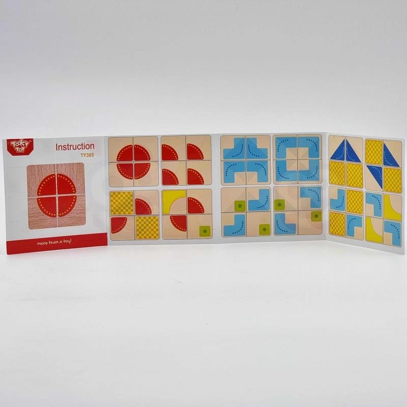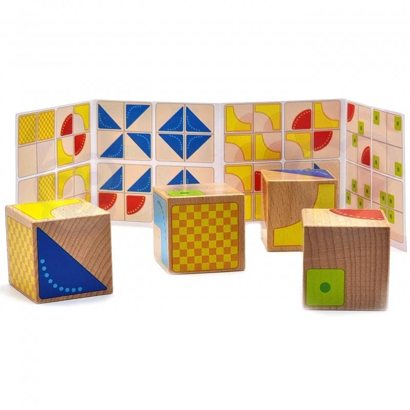 TOOKY TOY Drewniane Klocki Sensoryczne Kreatywne Symetria 4 szt. + Książeczka ze Wzorami Certyfikat FSC