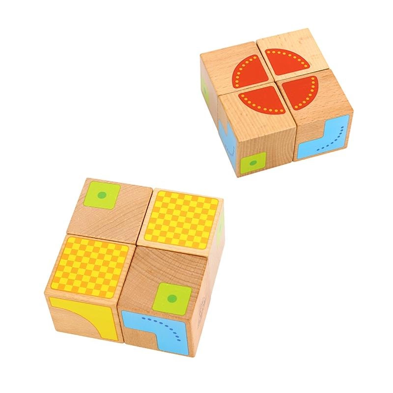 • - zestaw zawiera 4 klocki o takich samych grafikach