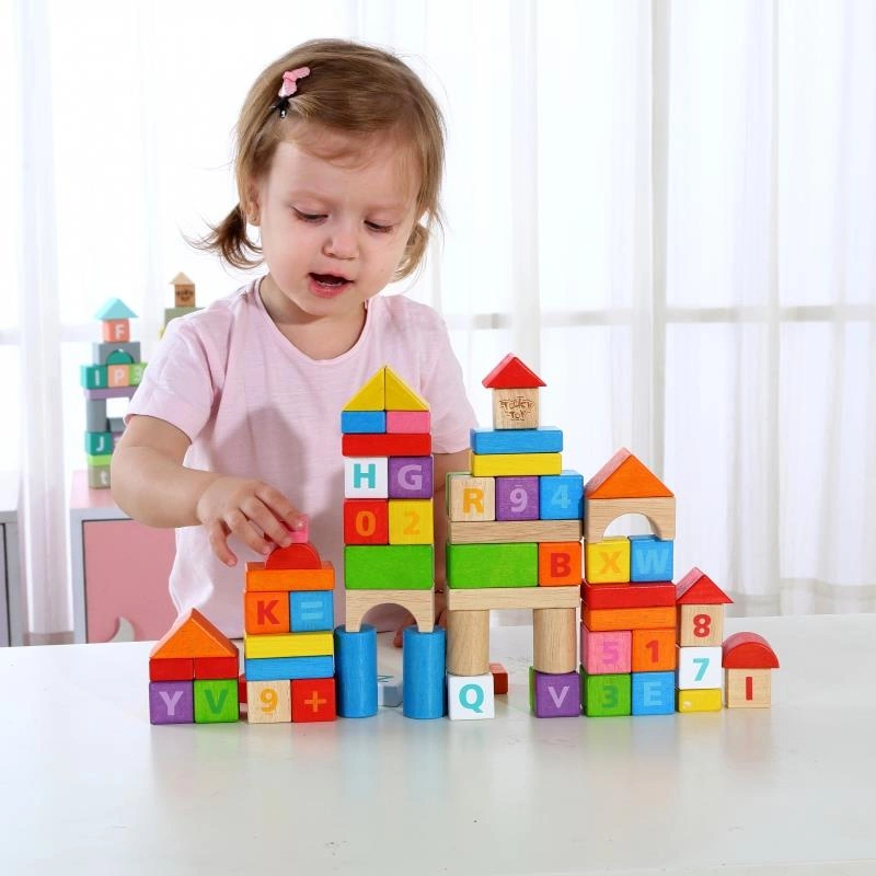 - Klocki wykonane z drewna i pomalowane bezpiecznymi dla dzieci oraz przyjaznymi dla środowiska farbami