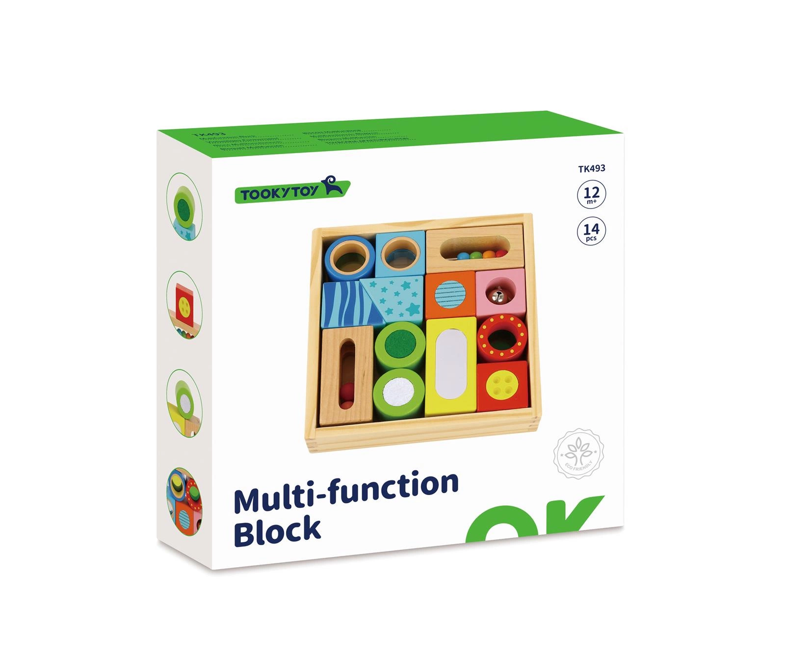 TOOKY TOY Drewniane Pudełko Klocki Sensoryczne Układanka Multifunkcyjna Kształty Dźwięk Dotyk 12 el.