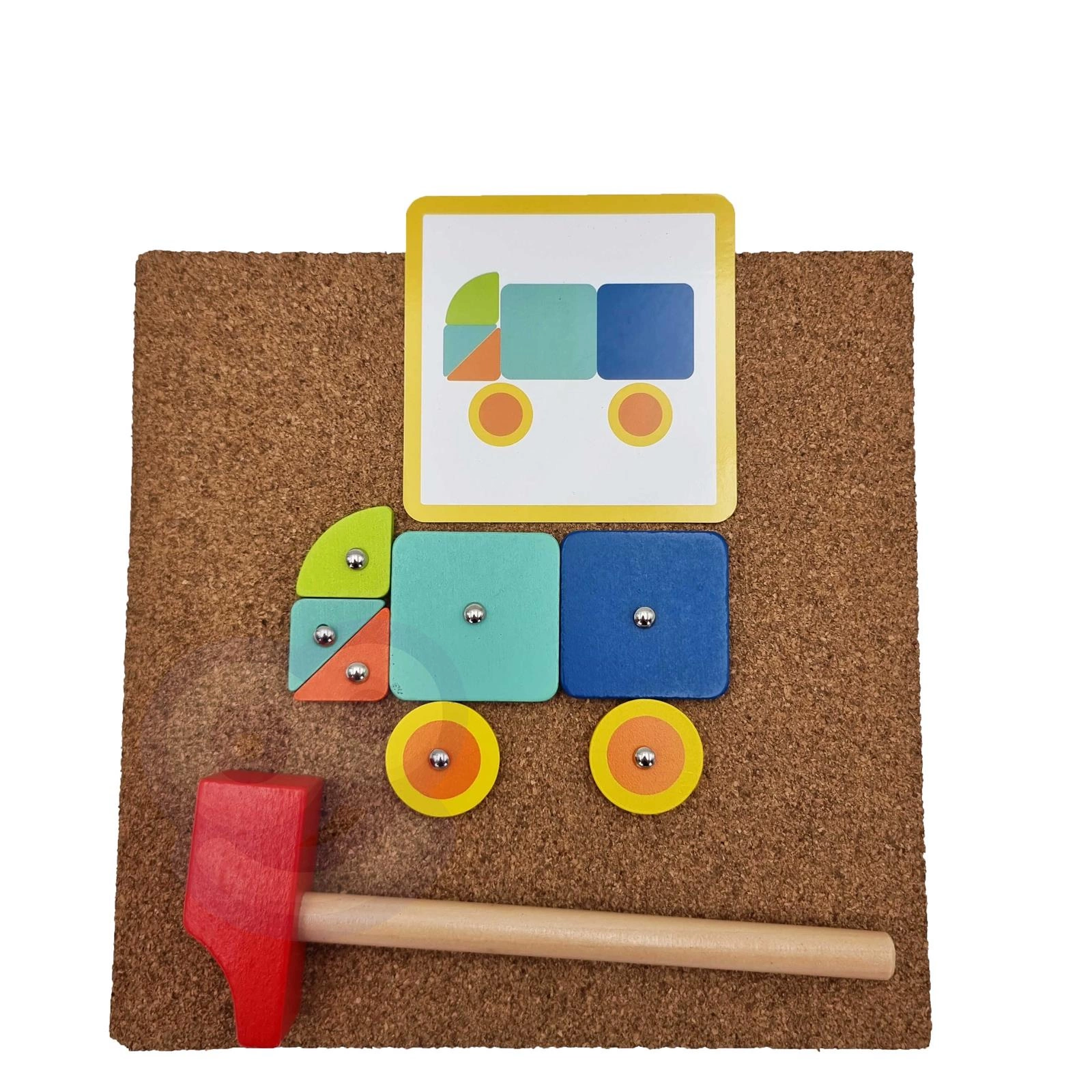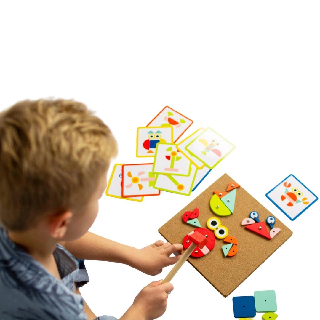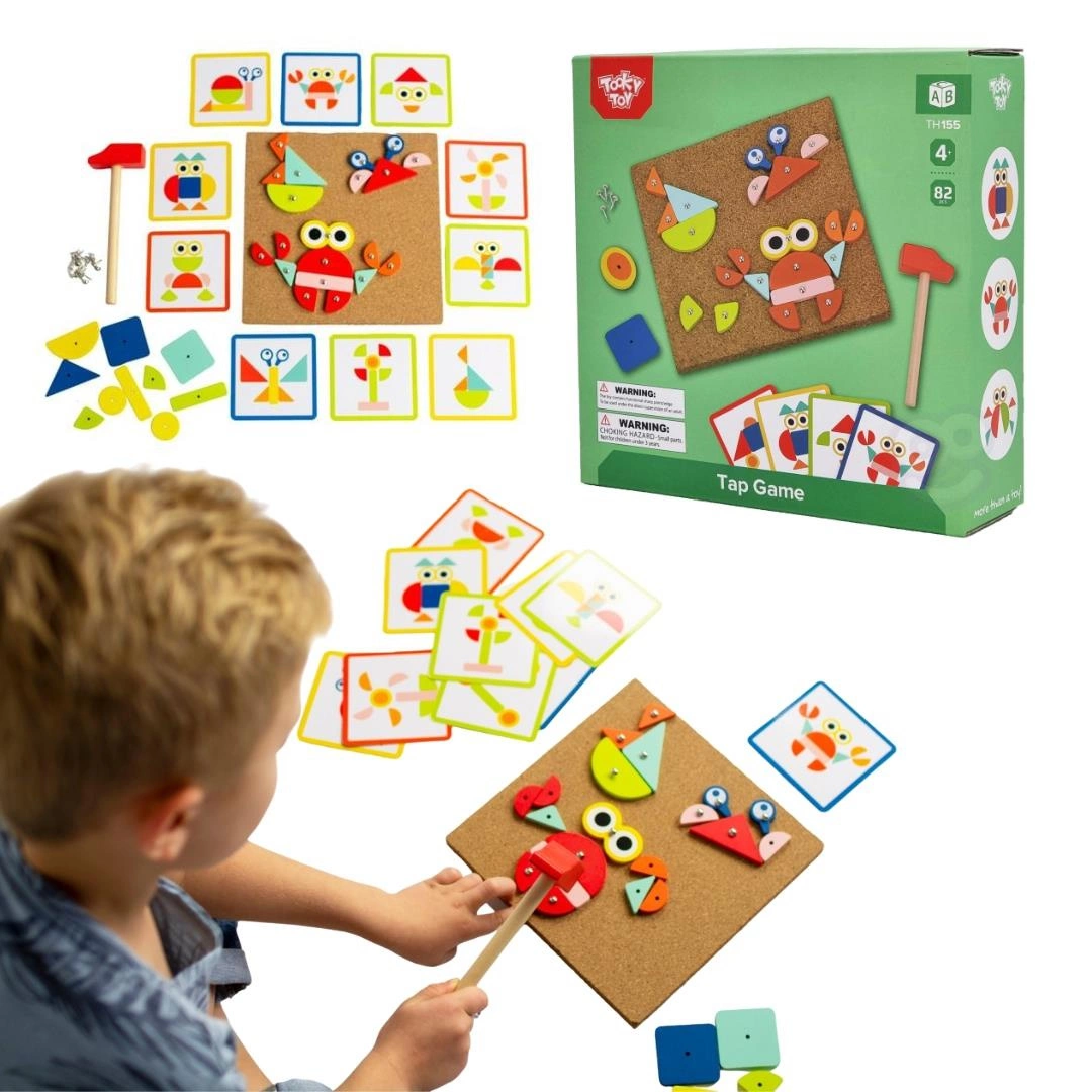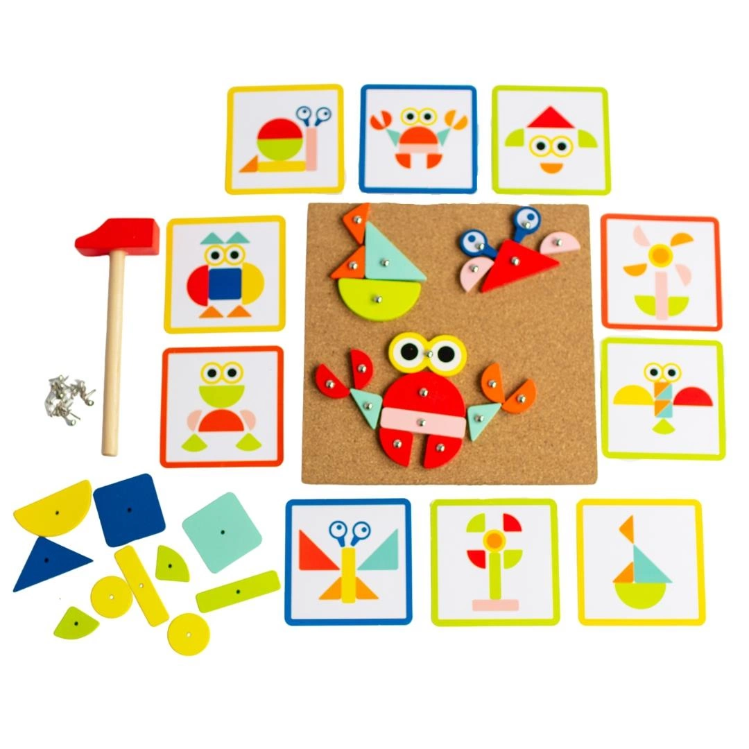 TOOKY TOY Układanka Tablica Korkowa Przybijanka z Młotkiem 20 Wzorów 82 el. Certyfikat FSC