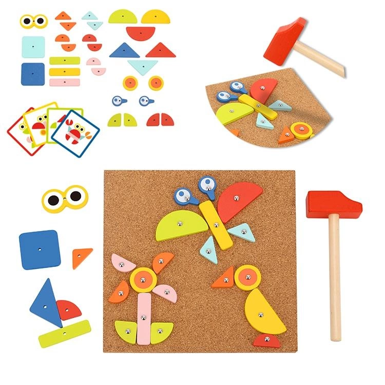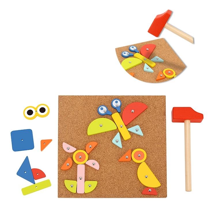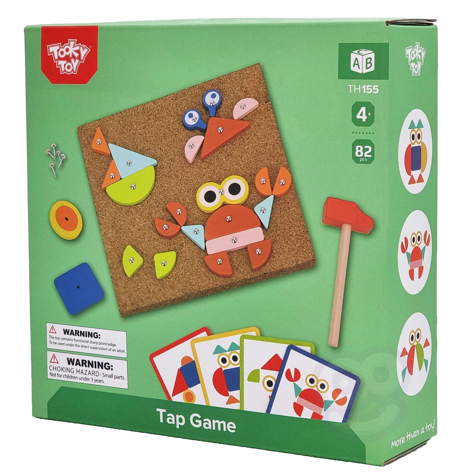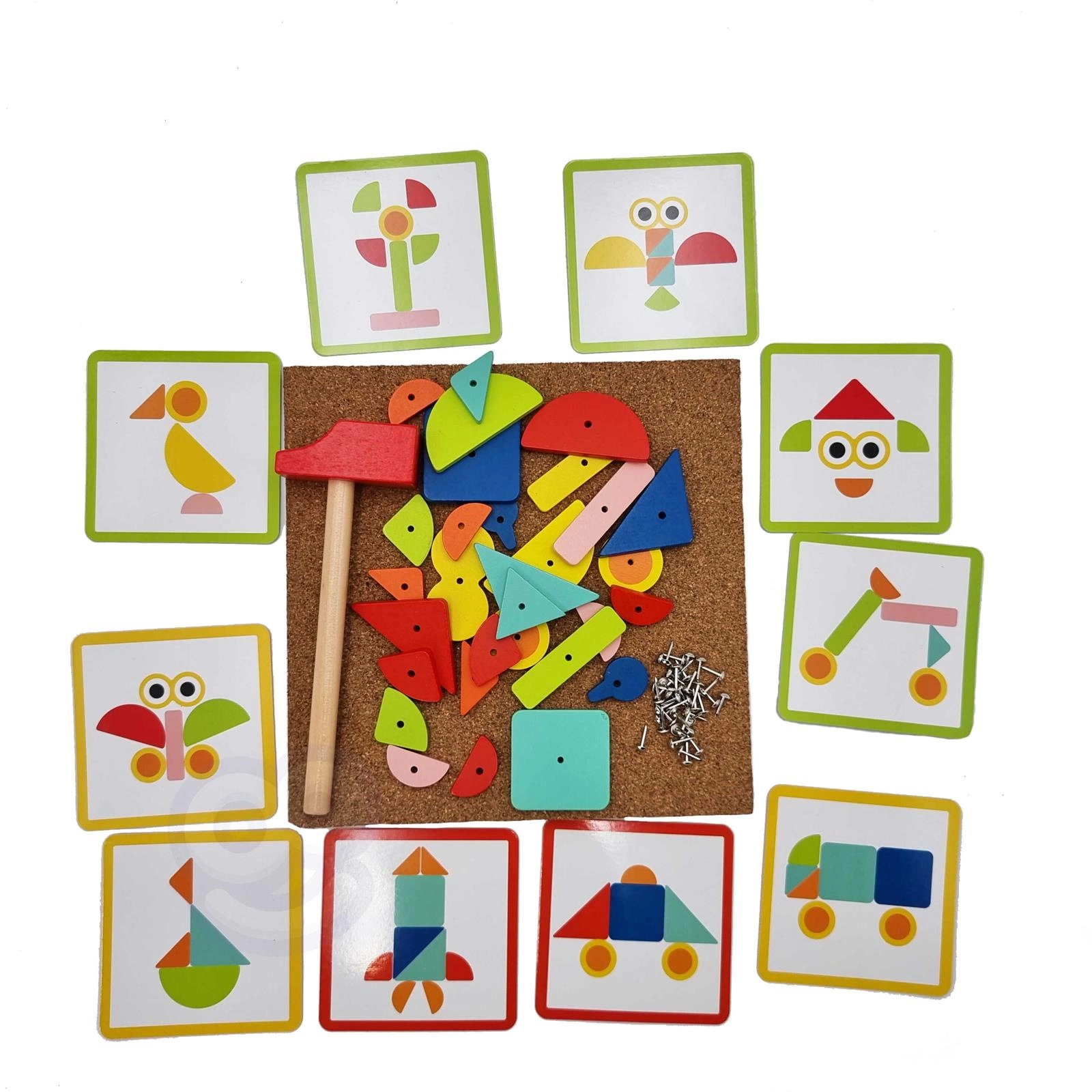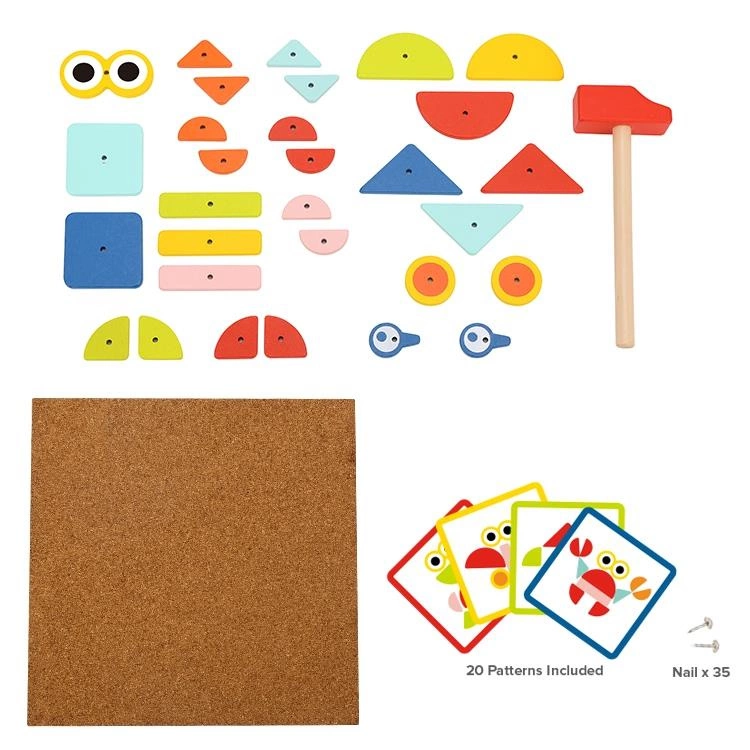 TOOKY TOY Układanka Tablica Korkowa Przybijanka z Młotkiem 20 Wzorów 82 el. Certyfikat FSC
