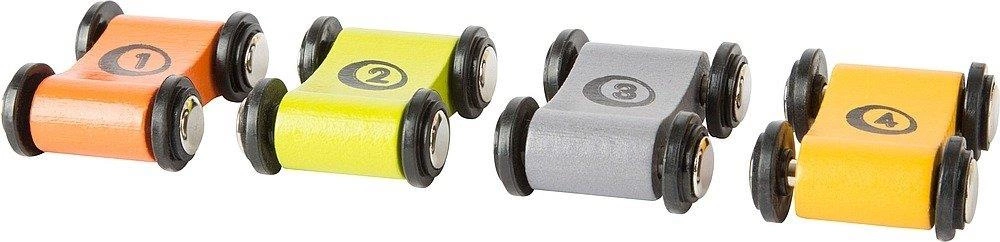 Kreatywny zestaw do zabawy dla najmłodszych sprawia wiele frajdy, dziecko poprzez zabawę ćwiczy swoją spostrzegawczość oraz uczy się liczenia do czterech. Kto chce sprawdzić jak szybko poruszają się bolidy?