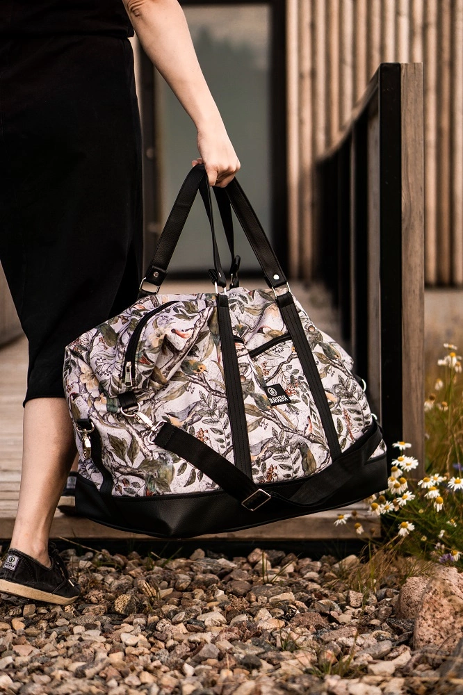 Duża torba uszyta z tkaniny odpornej na działanie wody, ścieranie i promieniowanie UV. Środek wykonany z nieprzemakalnej podszewki, odpornej na zabrudzenia. Idealna na weekendowy wyjazd, jako bagaż kabinowy do samolotu, bagaż podręczny dla całej rodziny, torba do szpitala, czy torba na basen i siłownię. Fantastyczna dla osób, które cenią sobie elegancję połączoną z praktycznością.