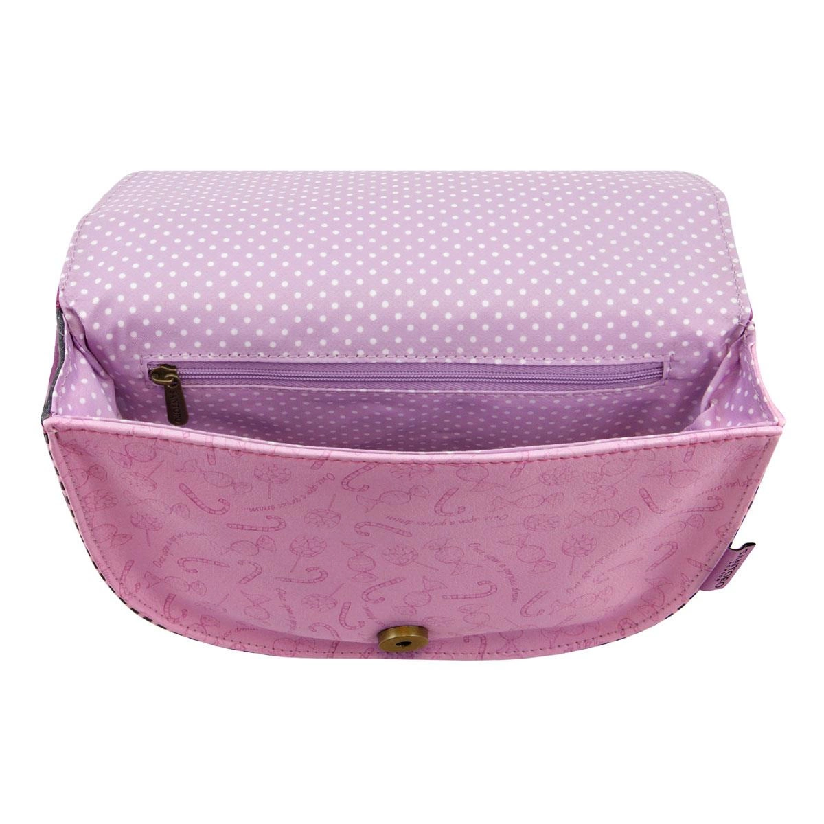 - Wnętrze zostało wykończone podszewką w kropeczki, znajdziemy tam również kieszonkę zapinaną na suwak.