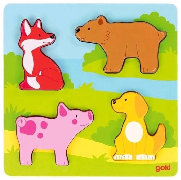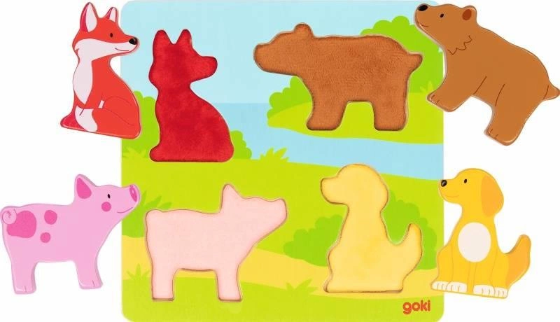 Układanka drewniana dotykowa Zwierzęce futerko 57433-Goki, zabawki edukacyjne dla dzieci