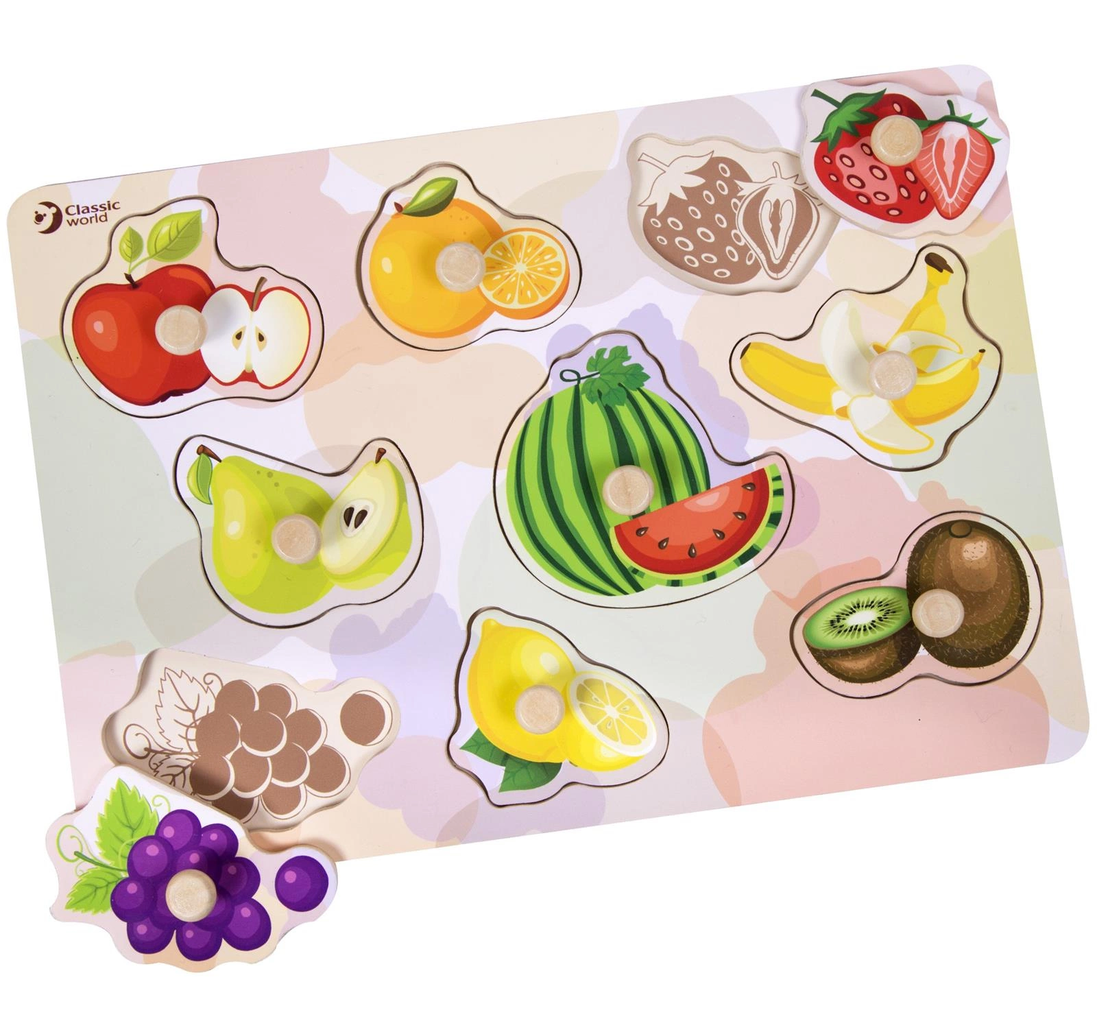• - Układanka Classic World Owoce to świetna zabawka dla maluchów w wieku od 18 miesiąca życia.