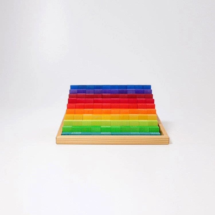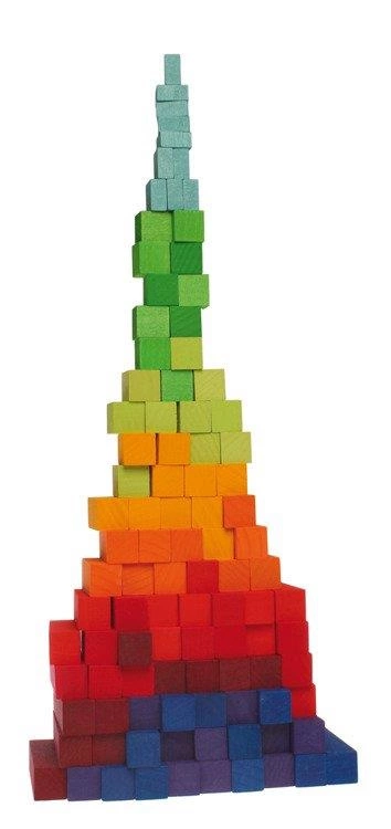 Tęczowe schody, to zestaw 100 klocków, który zachwyca jeszcze przed wyjęciem ich z ramki. Doskonale wykończone drewno, piękna kompozycja kolorów, przenikające przez bejcę słoje, to energetyczna ozdoba każdego dziecięcego pokoju. Jednak długo w pudełku nie zostaną bo chyba nie znajdzie się dziecko, które powstrzyma się przed natychmiastowym przystąpieniem do zabawy. W końcu to klocki, czyli jedna z najbardziej kreatywnych pobudzających i uniwersalnych zabawek.