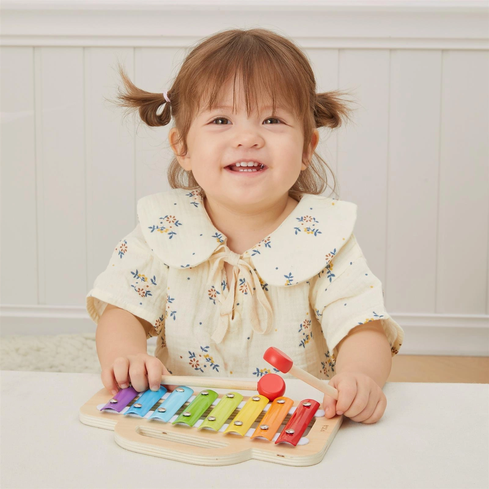 Ten kolorowy, drewniany ksylofon to idealna pierwsza zabawka muzyczna dla dzieci od 18 miesiąca życia. Wydaje 8 czystych tonów, które wprowadzają malucha w świat muzyki i rytmu. Tęczowe kolory przyciągają uwagę i inspirują do zabawy, rozwijając kreatywność i koncentrację. Wbudowany schowek na młoteczki oraz boczny uchwyt sprawiają, że ksylofon jest łatwy do przechowywania i przenoszenia. To doskonały prezent, który łączy zabawę, naukę muzyki i rozwój motoryki małych rączek!