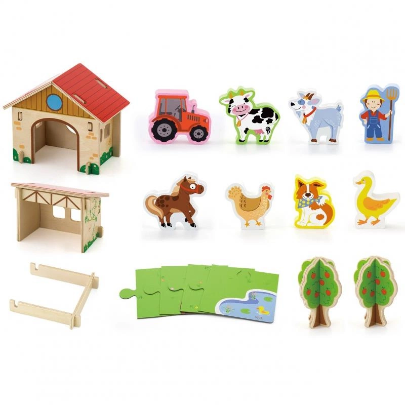 Viga Drewniana Farma dla Zwierząt 3D Zagroda ze zwierzętami 30 elementów