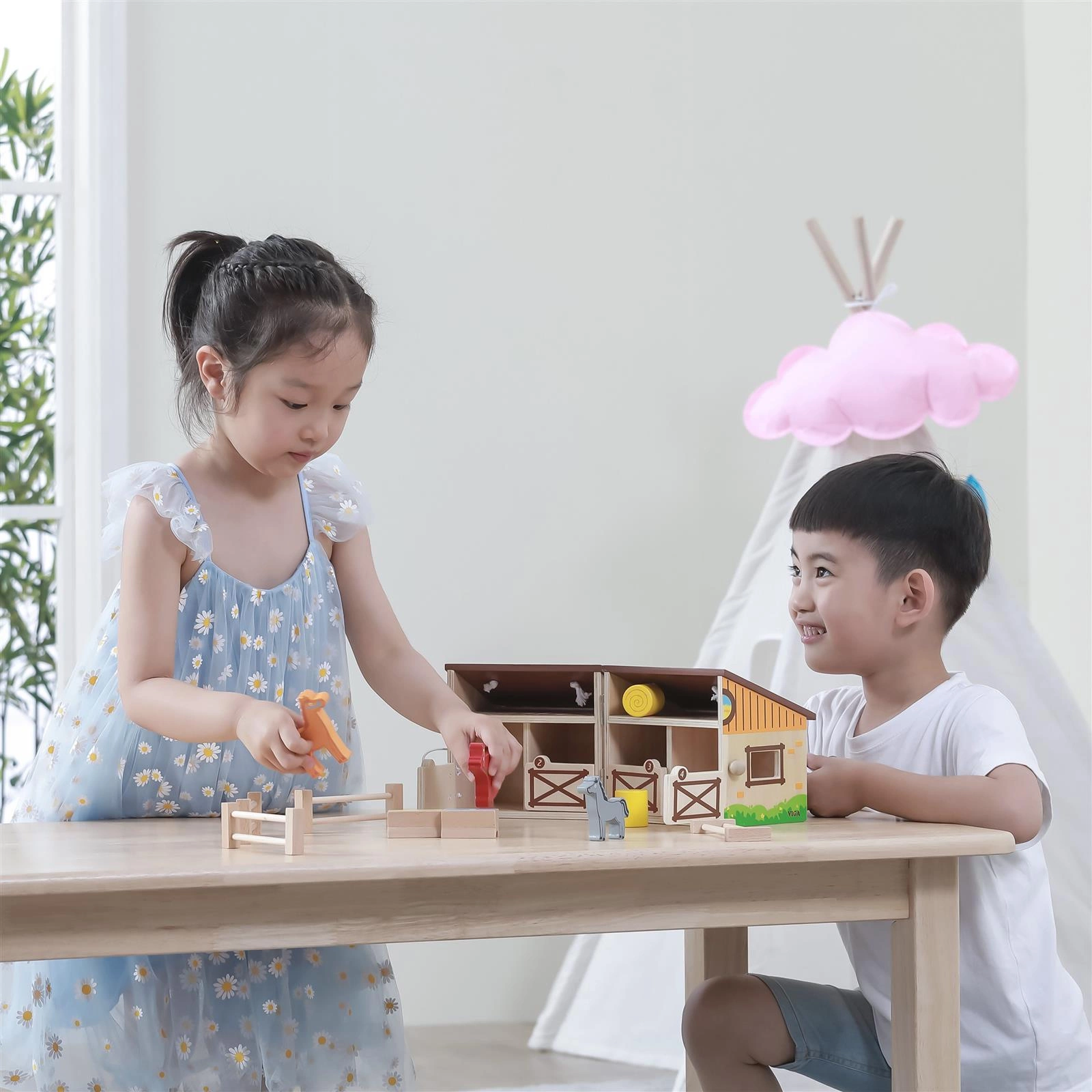 Drewniana kolorowa dwupiętrowa Stadnina w walizce od firmy Viga to jedna z czołowych zabawek, która pozwoli dziecku wejść do świata ciekawej i kreatywnej zabawy. Ten niesamowity zestaw pobudzi wyobraźnię Twojego dziecka. Sprawi, że maluch będzie mógł wcielić się w rolę hodowcy koni