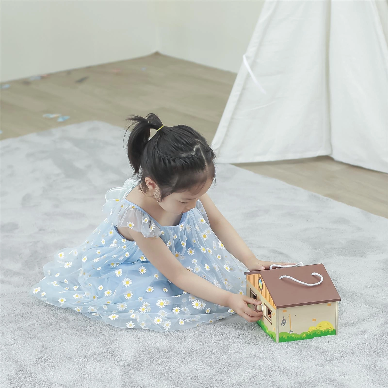• - Budynek wyposażony jest w poręczne uchwyty dzięki którym dziecko może zabrać zabawkę gdziekolwiek tylko zechce.