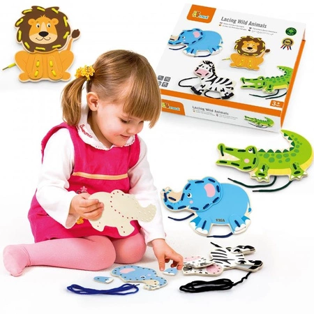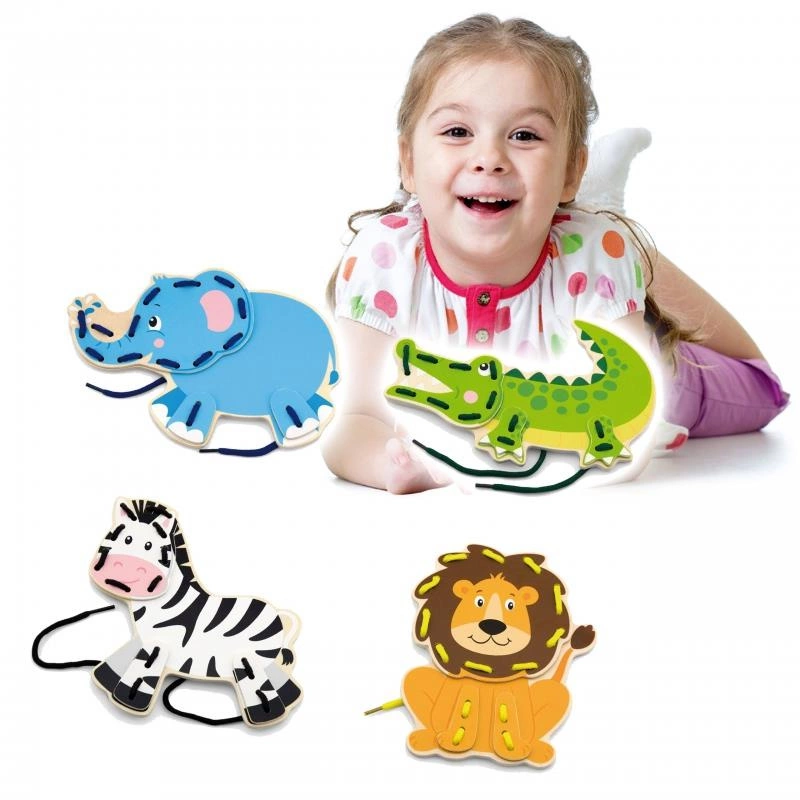 Drewniana sznurowanka Zoo to doskonała, drewniana pomoc dydaktyczna. Dzięki niej dziecko zdobędzie wiedzę w jaki sposób powinno posługiwać się sznurówką. Poprzez zabawę zobaczy jakie to łatwe i przyjemnie.