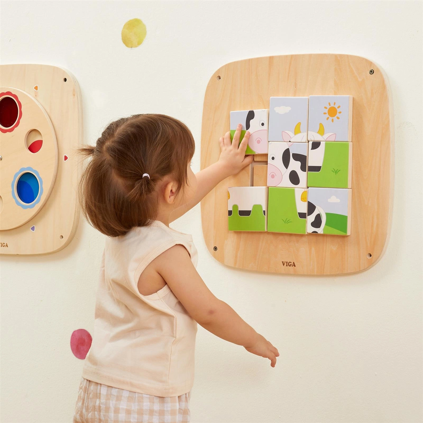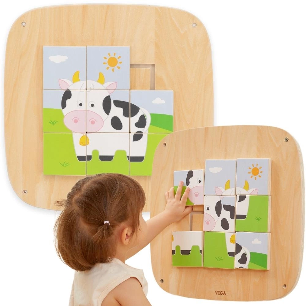 VIGA Drewniana Tablica Manipulacyjna Sensoryczna Układanka Obrazkowa