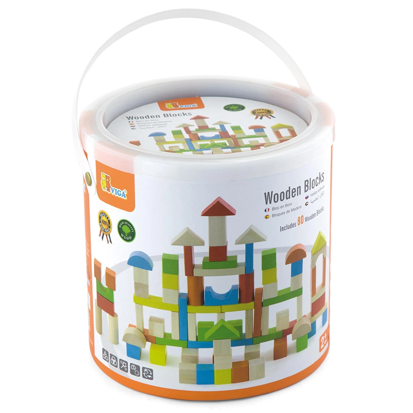 VIGA Drewniane Klocki Edukacyjne w Wiaderku 80 el.
