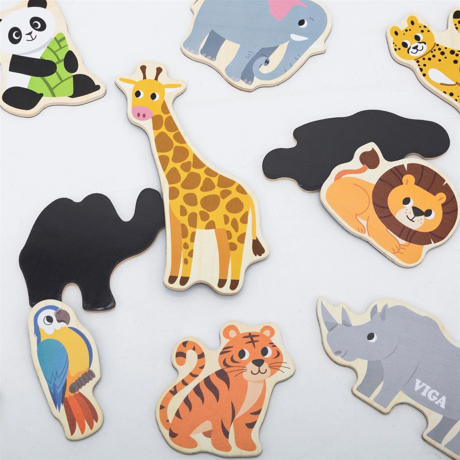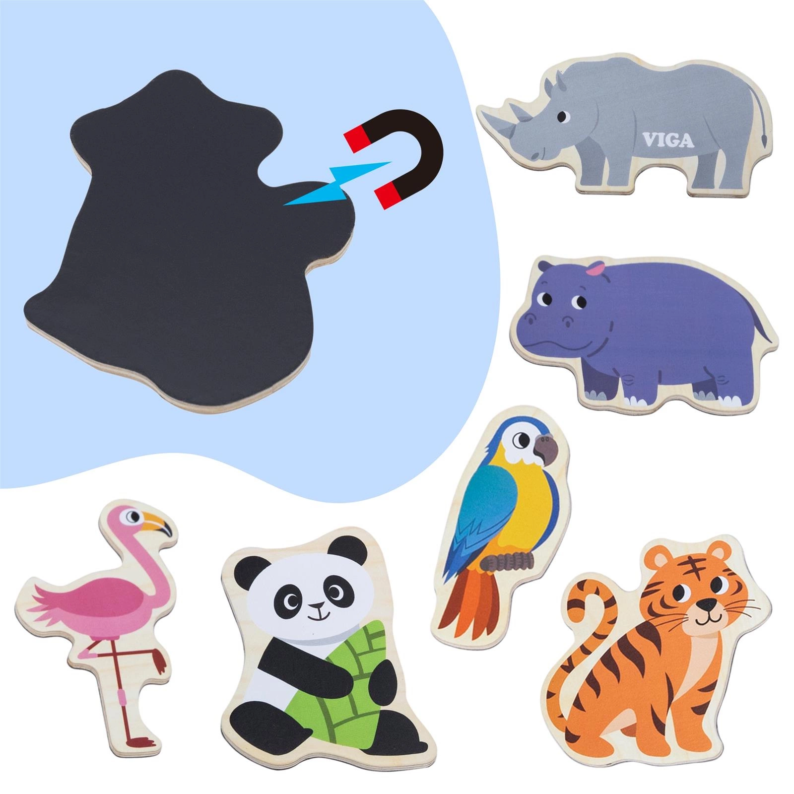 VIGA Drewniane Magnesy Dzikie Zwierzęta – Kolorowe Magnesy Edukacyjne 18M+