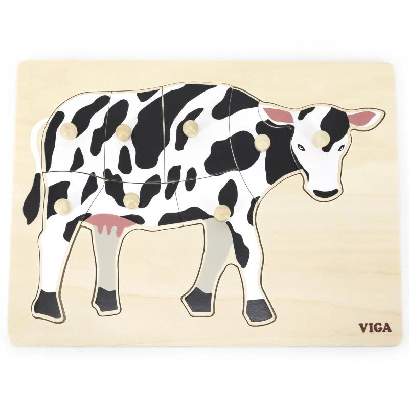 VIGA Drewniane Puzzle Montessori Krowa z Pinezkami