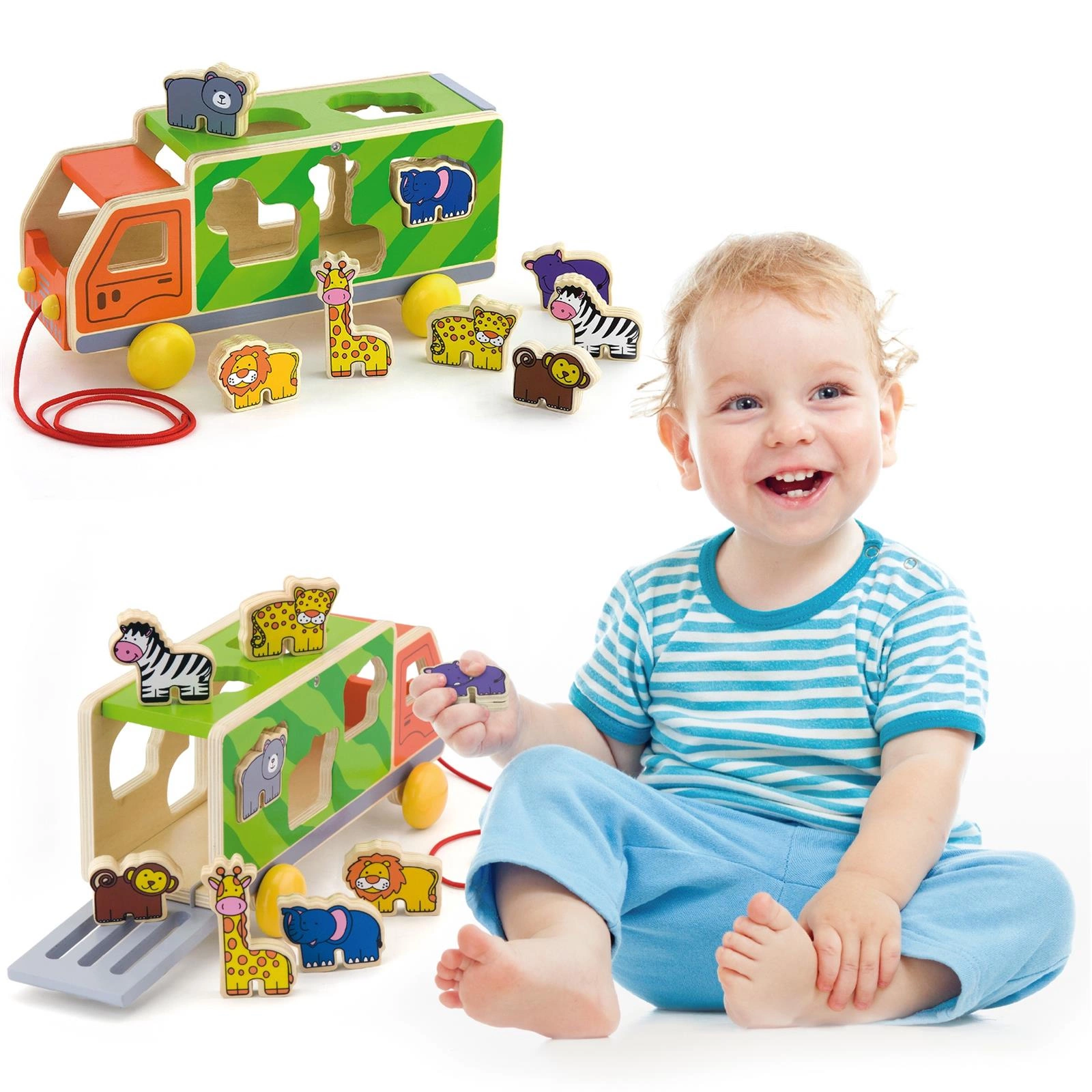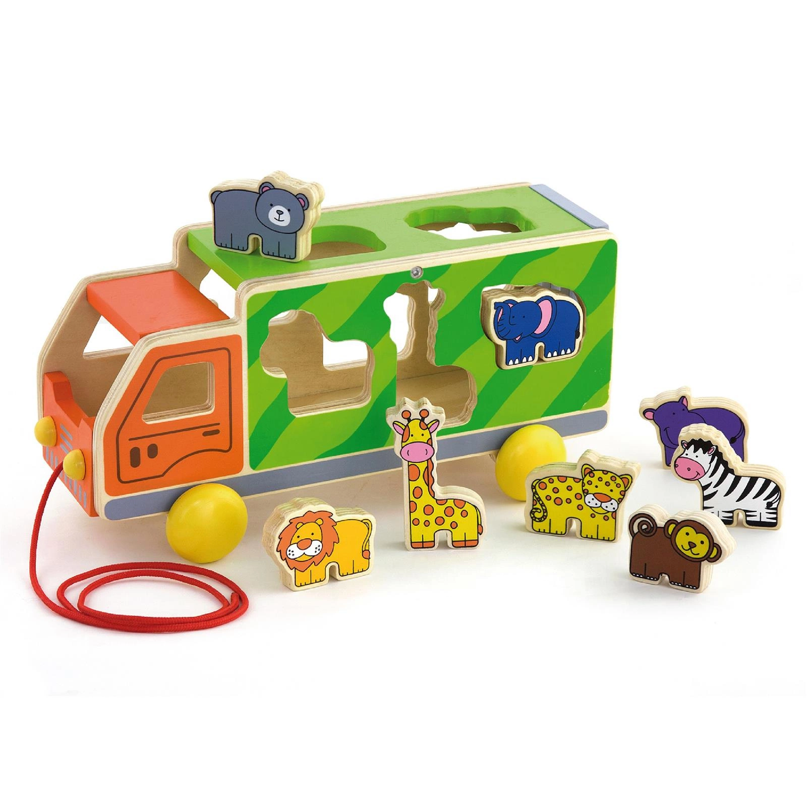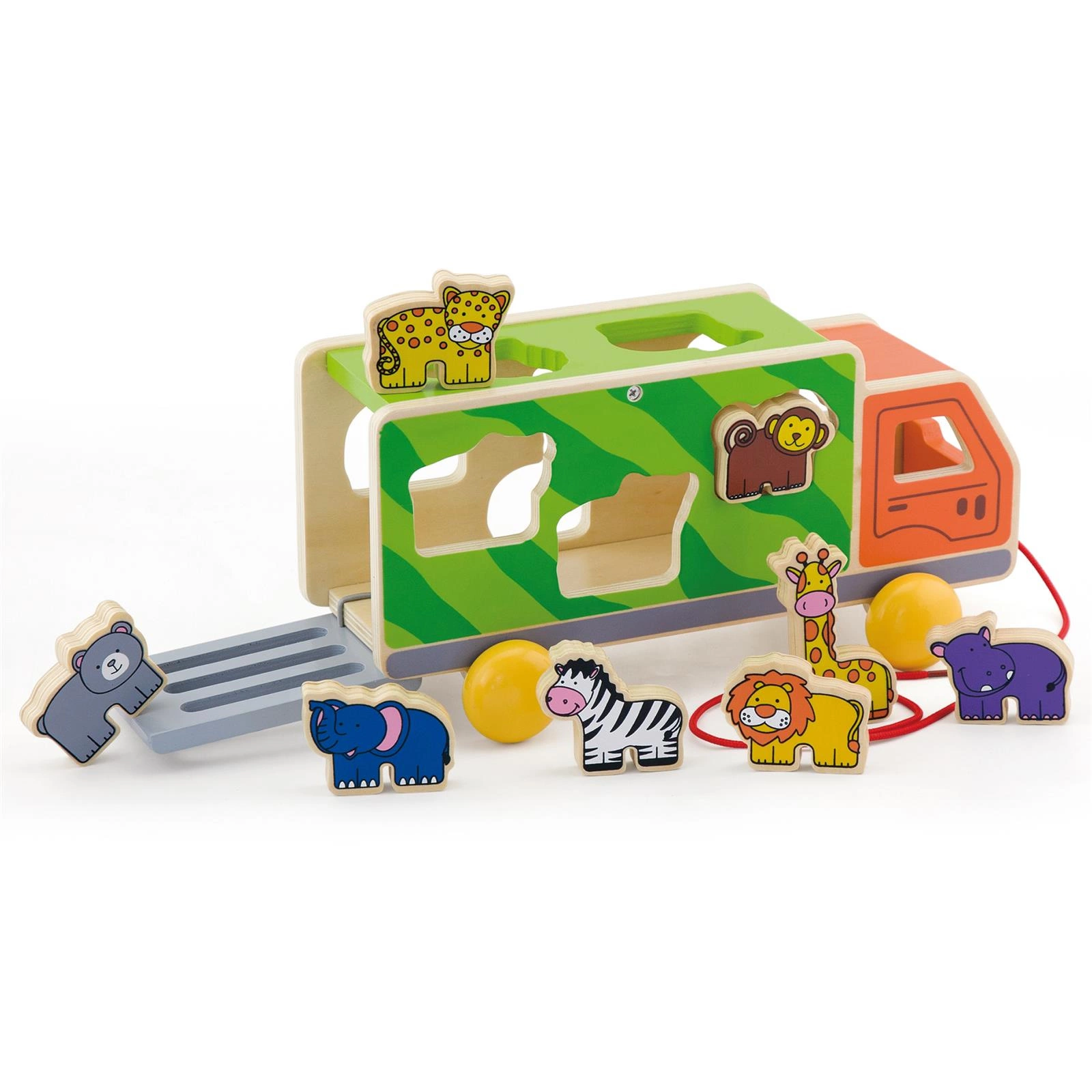 VIGA Drewniany samochód ze zwierzątkami Sorter kształtów Montessori