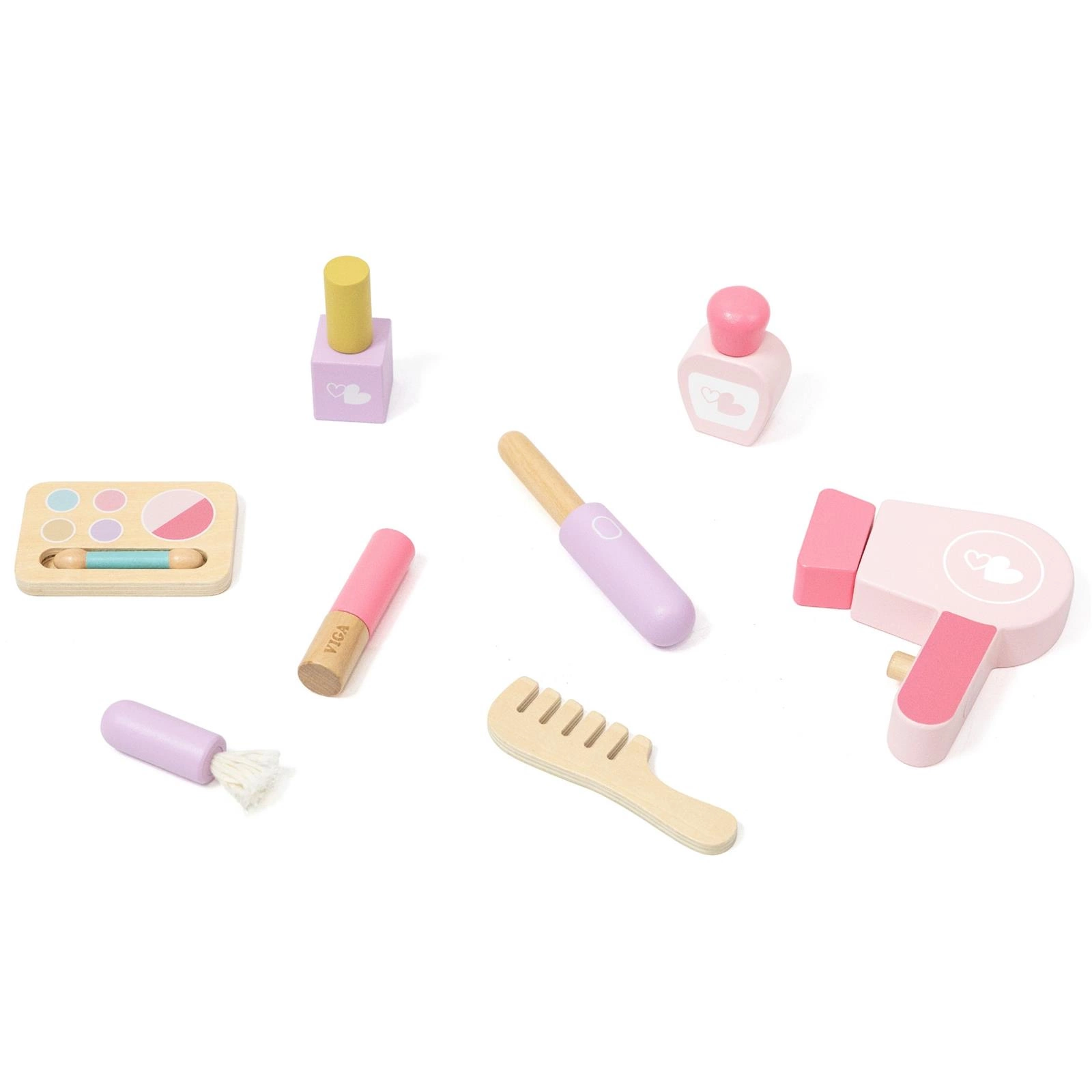 Duża Drewniana toaletka z marki Viga to wyjątkowa drewniana toaletka dla małej księżniczki, która spełni marzenia każdej dziewczynki! Wykonana z najwyższej jakości drewna, w delikatnych odcieniach różu i bieli, ta urocza toaletka zachwyca swoim bajkowym designem. Stylowe, zaokrąglone kształty, subtelne zdobienia i eleganckie nóżki sprawiają, że doskonale komponuje się w pokoju dziecięcym, dodając mu uroku i magii.Toaletka rozwija kreatywność, wyobraźnię i zachęca do odgrywania ról. Jest również doskonałym pomysłem na prezent – solidne wykonanie i estetyczny wygląd sprawią, że będzie służyć przez lata.
