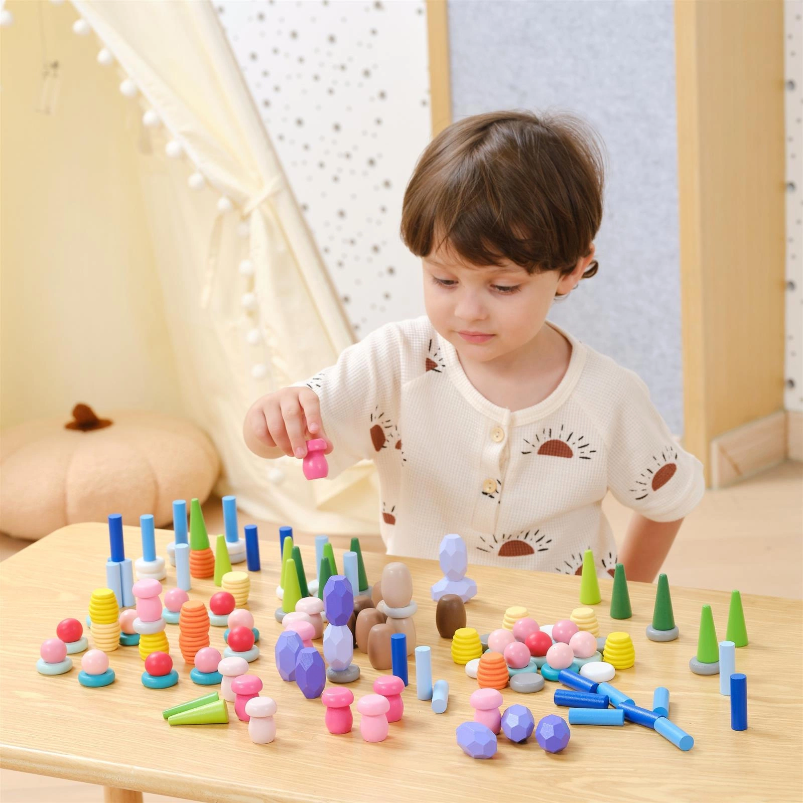 - - 141 elementów inspirowanych naturą – grzyby, plastry miodu, kamienie, stożki, pierścienie