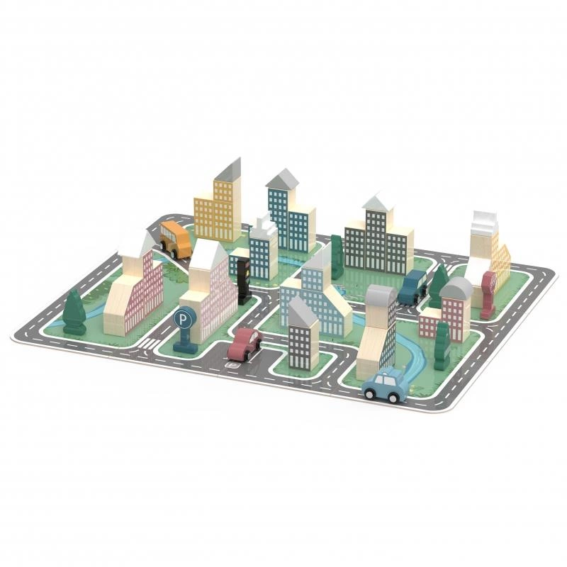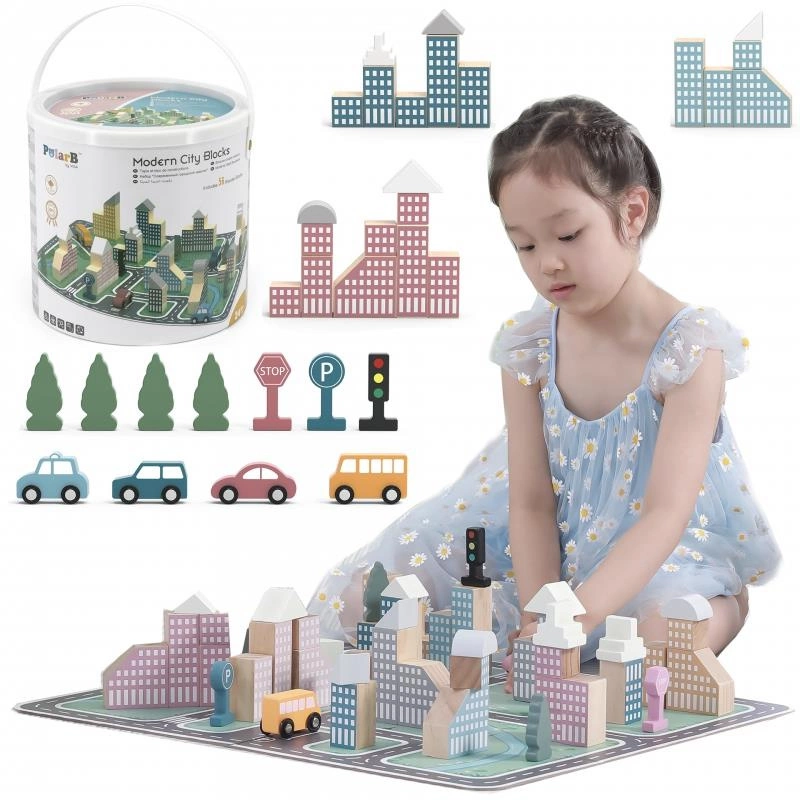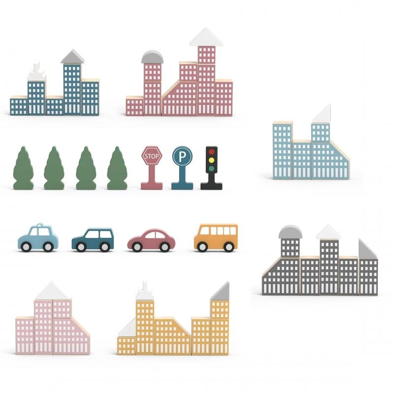 VIGA PolarB Drewniana Makieta z Klockami Miasto 56 el.