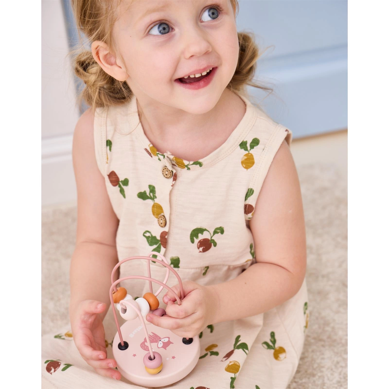 Drewniana pętla motoryczna to świetna zabawka sensoryczna, która pozwala dziecku trenować sprawność rączek. Przeplatając koraliki przez zakrzywione rurki, dziecko musi wykonywać odpowiednie ruchy, aby działania odniosły sukces. Tym sposobem dziecko uczy się jakie ruchy należy wykonywać, a zarazem ćwiczy zręczność i precyzję. Na drewnianej podstawie znajdziemy kolorowy obrazek, do której przymocowane są kolorowe rurki. Na rurki nawleczone jest 10 kolorowych koralików w dwóch kształtach, które na pewno przyciągną uwagę naszych pociech.
