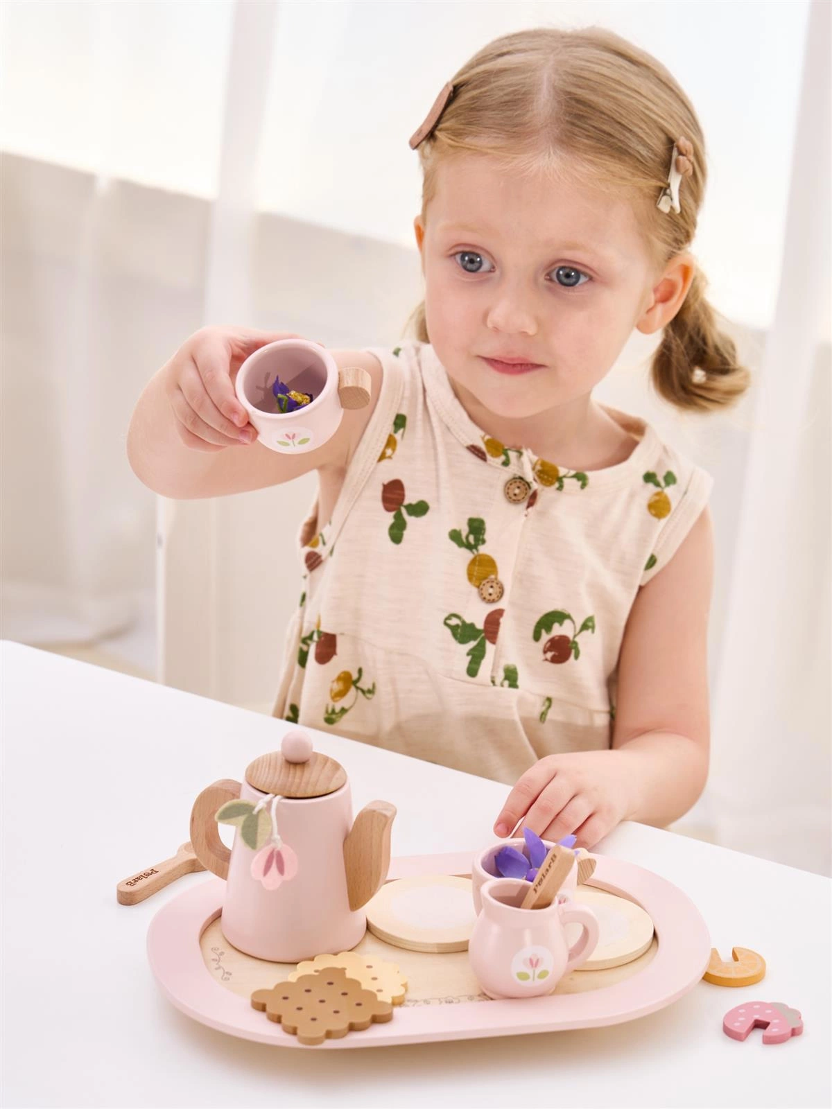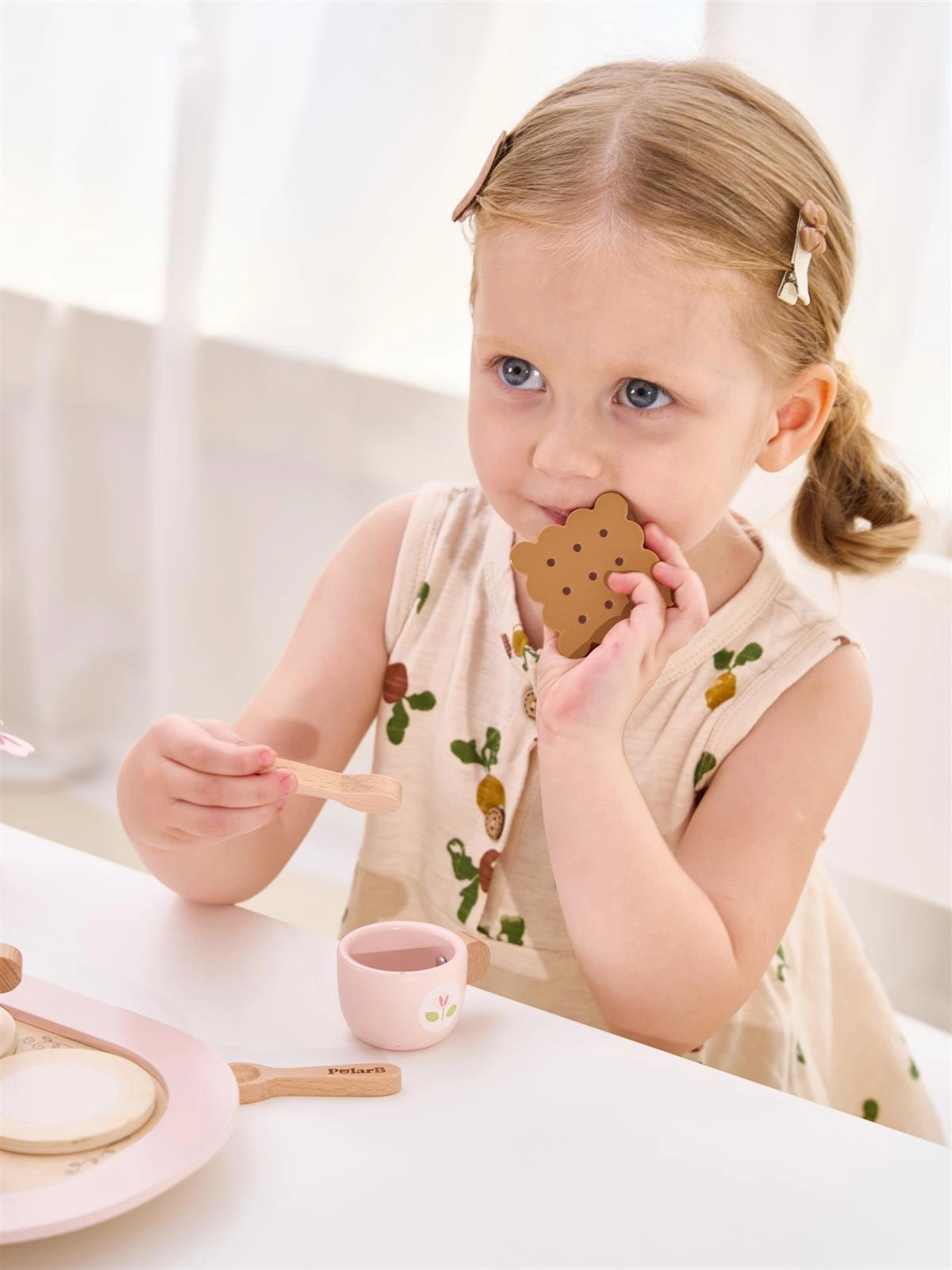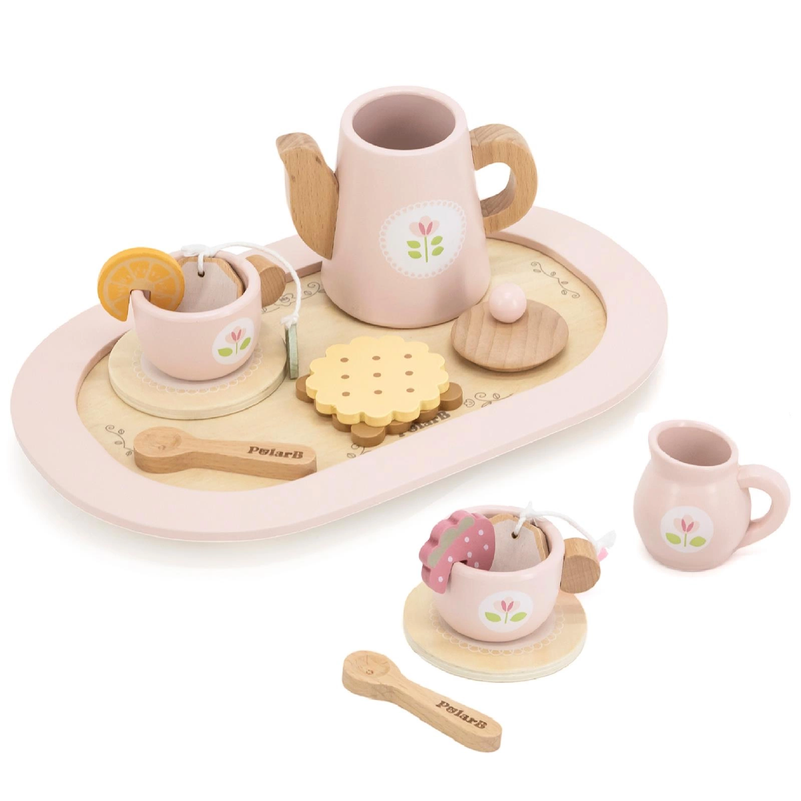 Drewniany Zestaw do Herbaty PolarB to uroczy komplet, który zachęca dzieci do organizowania swoich własnych przyjęć herbacianych. Zestaw zawiera drewniany dzbanek, filiżanki i podstawki, a także różnorodne dodatki jak torebki herbaty, plasterek cytryny czy truskawki. Każdy element jest starannie zaprojektowany, by pobudzać wyobraźnię dziecka i rozwijać jego umiejętności społeczne. Dzięki solidnemu wykonaniu, ten elegancki zestaw posłuży przez wiele godzin kreatywnej zabawy w naśladowanie dorosłych.