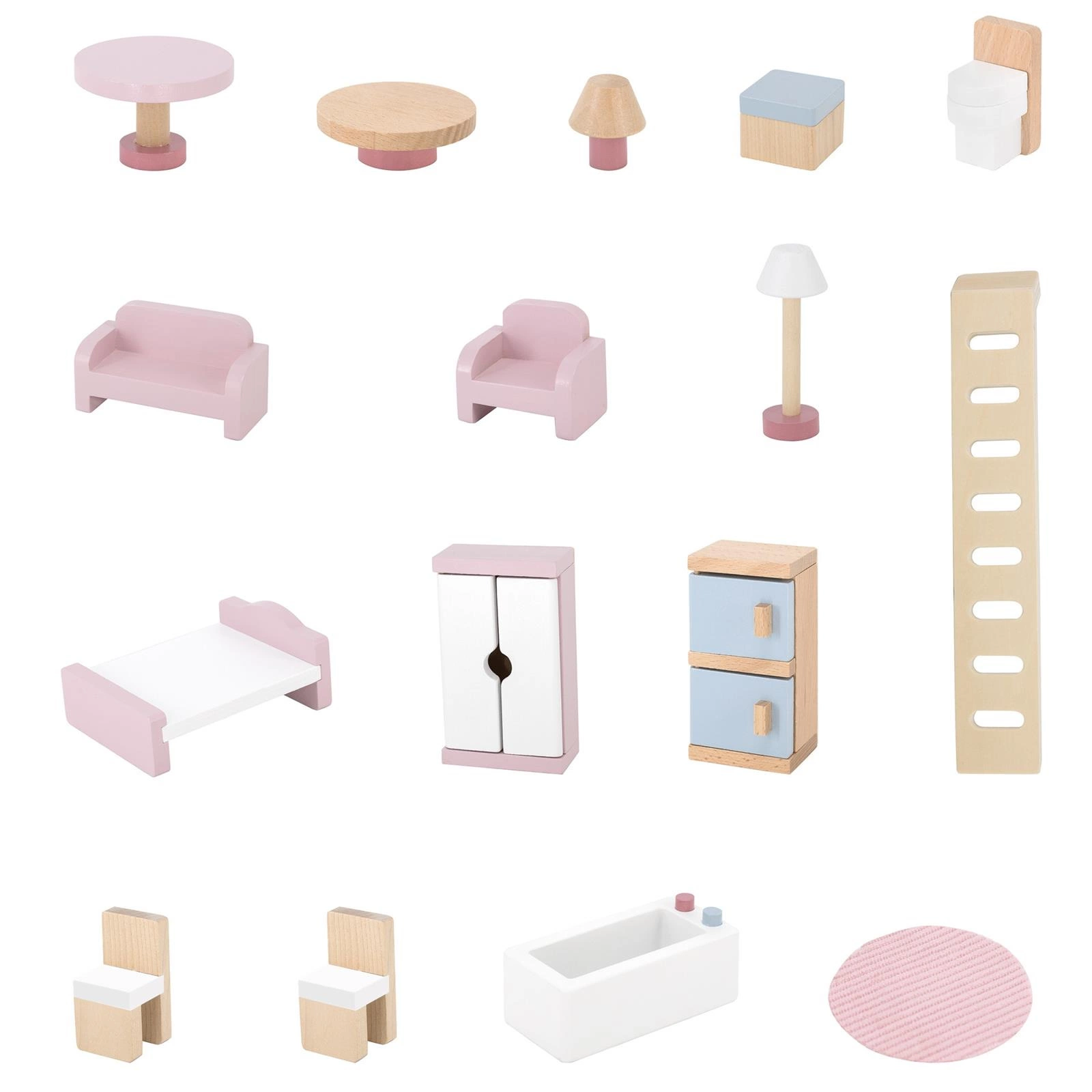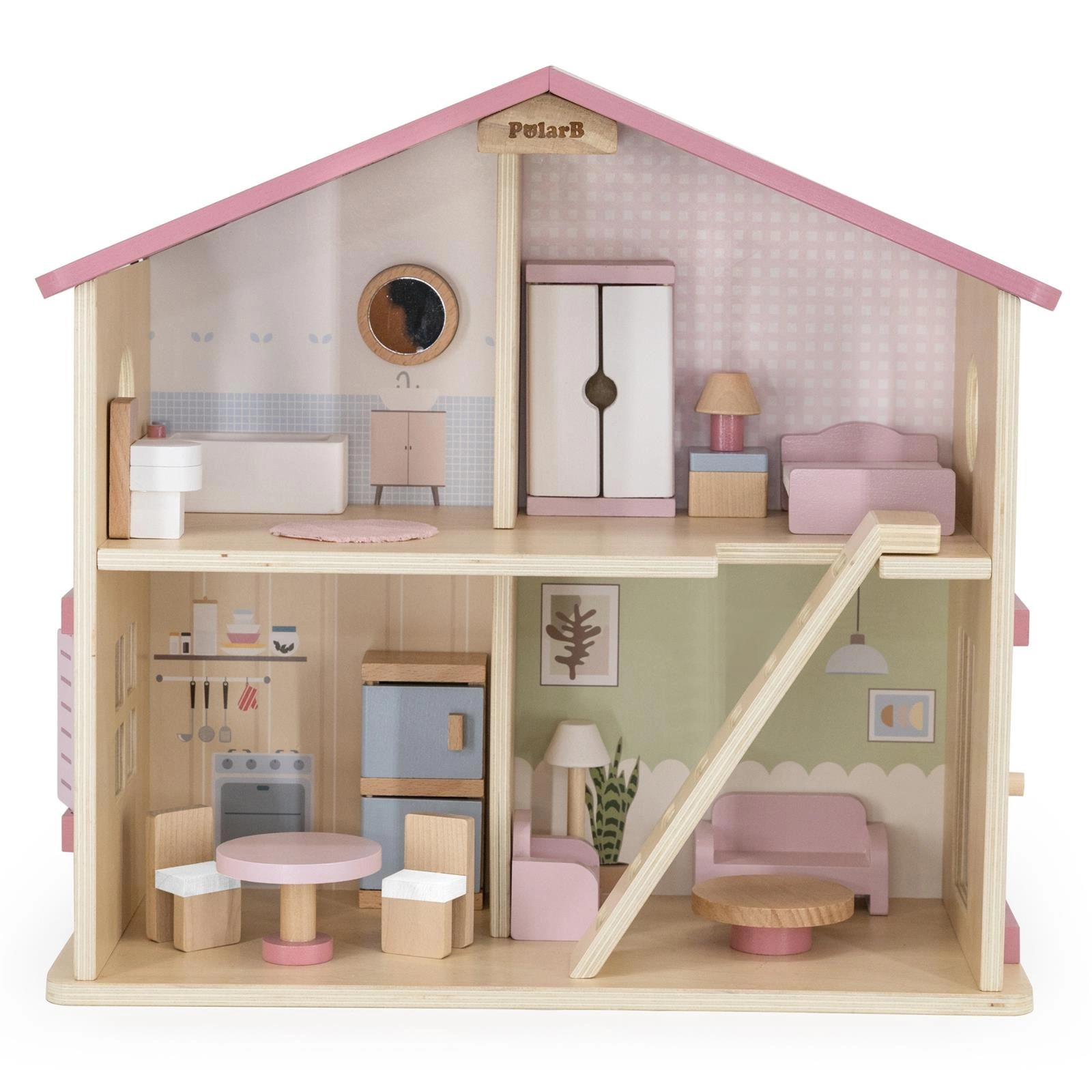 VIGA PolarB Duży Drewniany Domek dla Lalek 17 el.