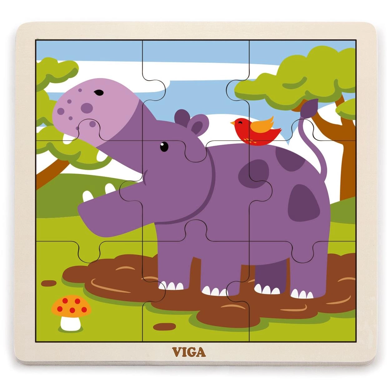 VIGA Poręczne Drewniane Puzzle Hipopotam 9 Elementów