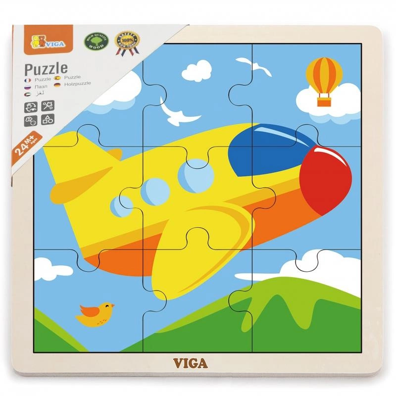 VIGA Poręczne Drewniane Puzzle Samolot 9 elementów