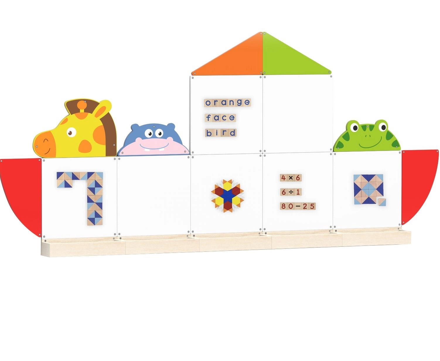 - Drewniana łódź ze zwierzętami z siedmioma tablicami magnetycznymi i suchościeralnymi pobudzi wyobraźnię każdego dziecka. Pozwoli rozwijać kreatywność, zmysł artystyczny dziecka. ułatwi stworzenie niesamowitych obrazów.