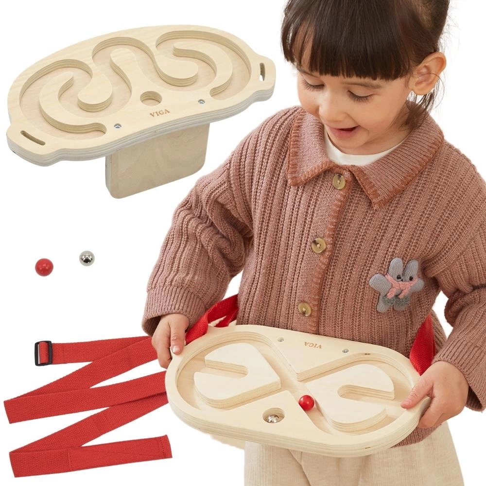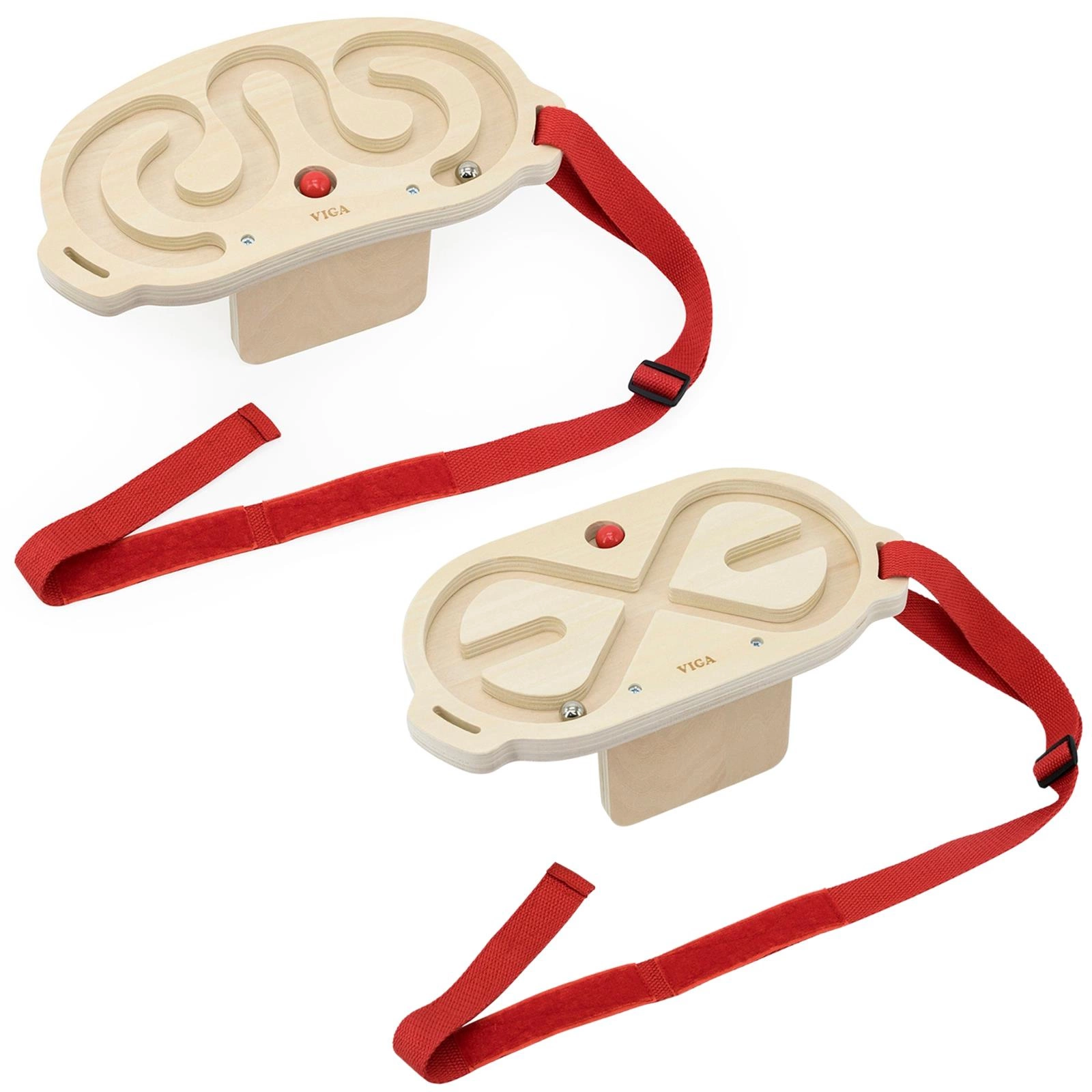 VIGA Zestaw labiryntów do balansowania ciałem to innowacyjna gra ruchowa, która angażuje całe ciało, rozwijając koordynację i równowagę. Dzięki dwóm drewnianym labiryntom i kulkom o różnej masie, zabawa staje się ekscytującym wyzwaniem dla dzieci. Gracze zakładają pas z labiryntem na talię, klatkę piersiową, nogi lub ramiona, a następnie poruszają ciałem, aby wprawić kulkę w ruch i przeprowadzić ją przez labirynt. Zabawki można używać samodzielnie lub rywalizować w parach, co dodaje zabawie dynamiki i integruje uczestników.